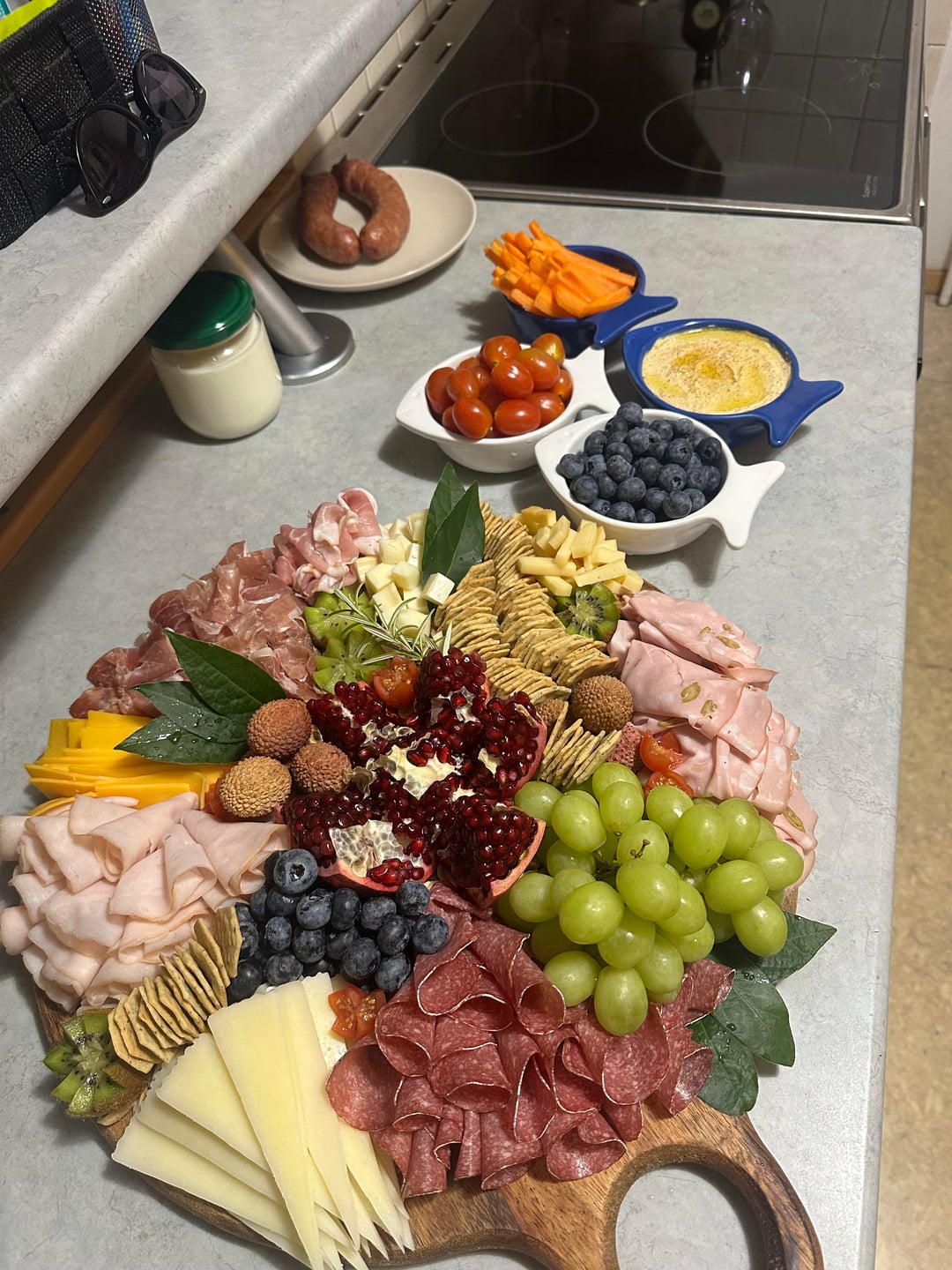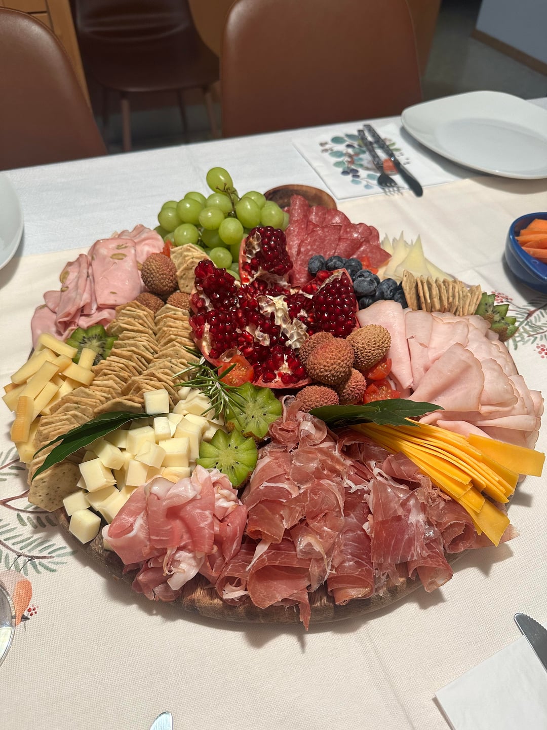 Easter Lamb Roast, Duck Fat Potatoes, Sprouts with Bacon, Garlic Spring Greens, Buttery Broccoli and Glazed Carrots. Red Wine Pan Gravy.