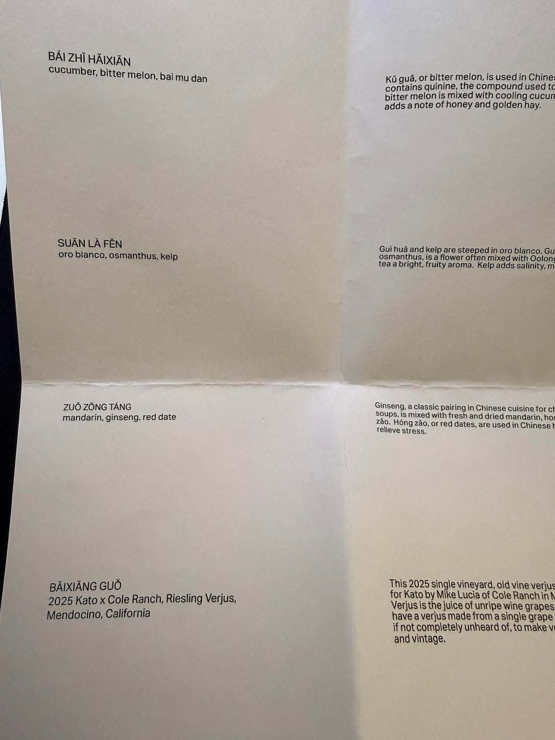 There’s been a lot of hype recently behind Kato especially after chef Jon Yao’s James Beard award along with the new eater video! I’ve been following Kato for a few years now and after reading all of the rave reviews here I decided to give it a try. I opted for the bar tasting menu ($185) as they didn’t have any availability for the full menu along with a non alc pairing ($55 on opentable but $70 in person…will get to this later).