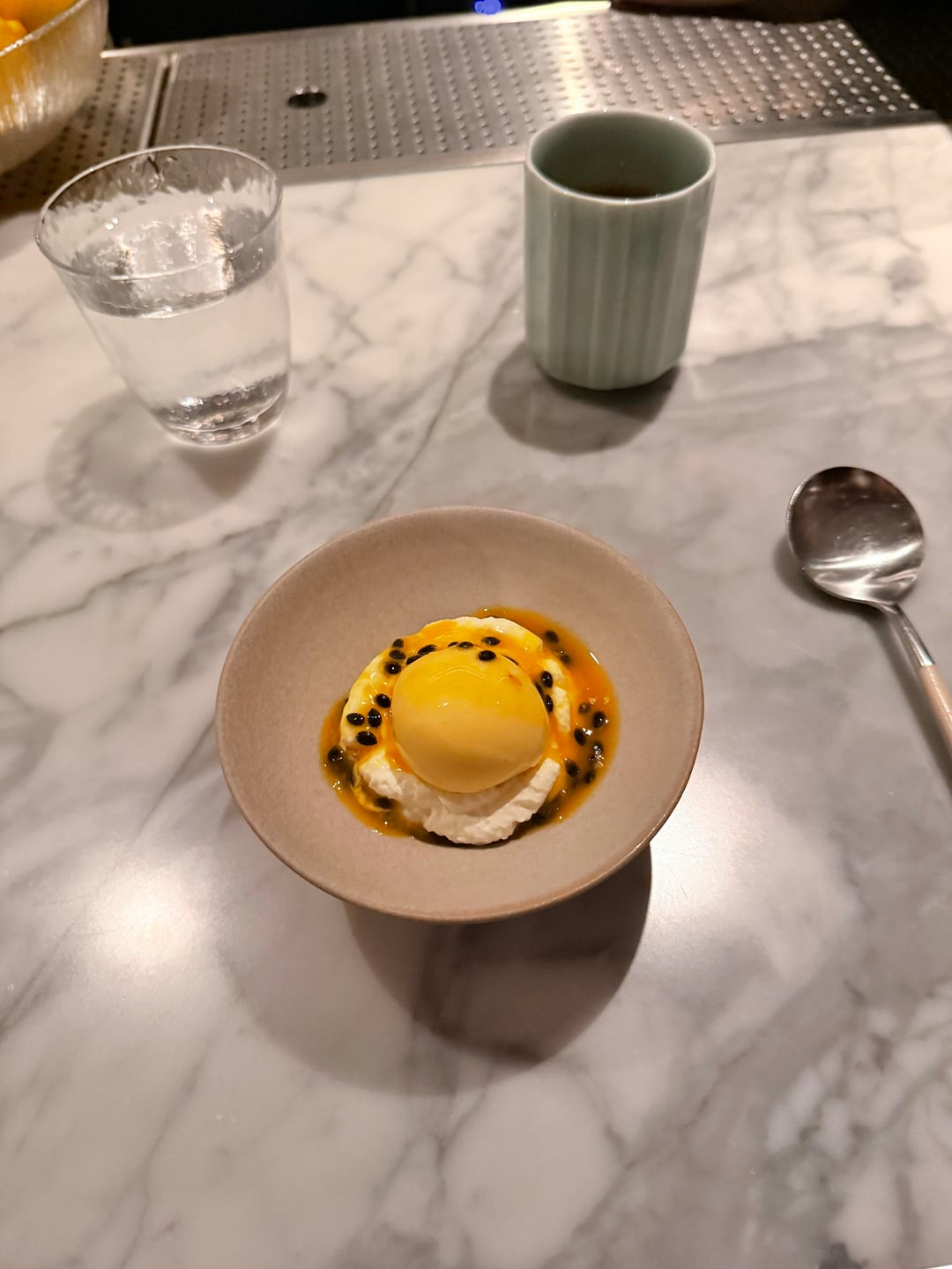 Onto dessert! At this point I was still a bit hungry but satisfied enough. This dessert was definitely overpowered by the passion fruit but was decent. They forgot our pairing drink probably because we ordered tea – both were nice though but nothing memorable.