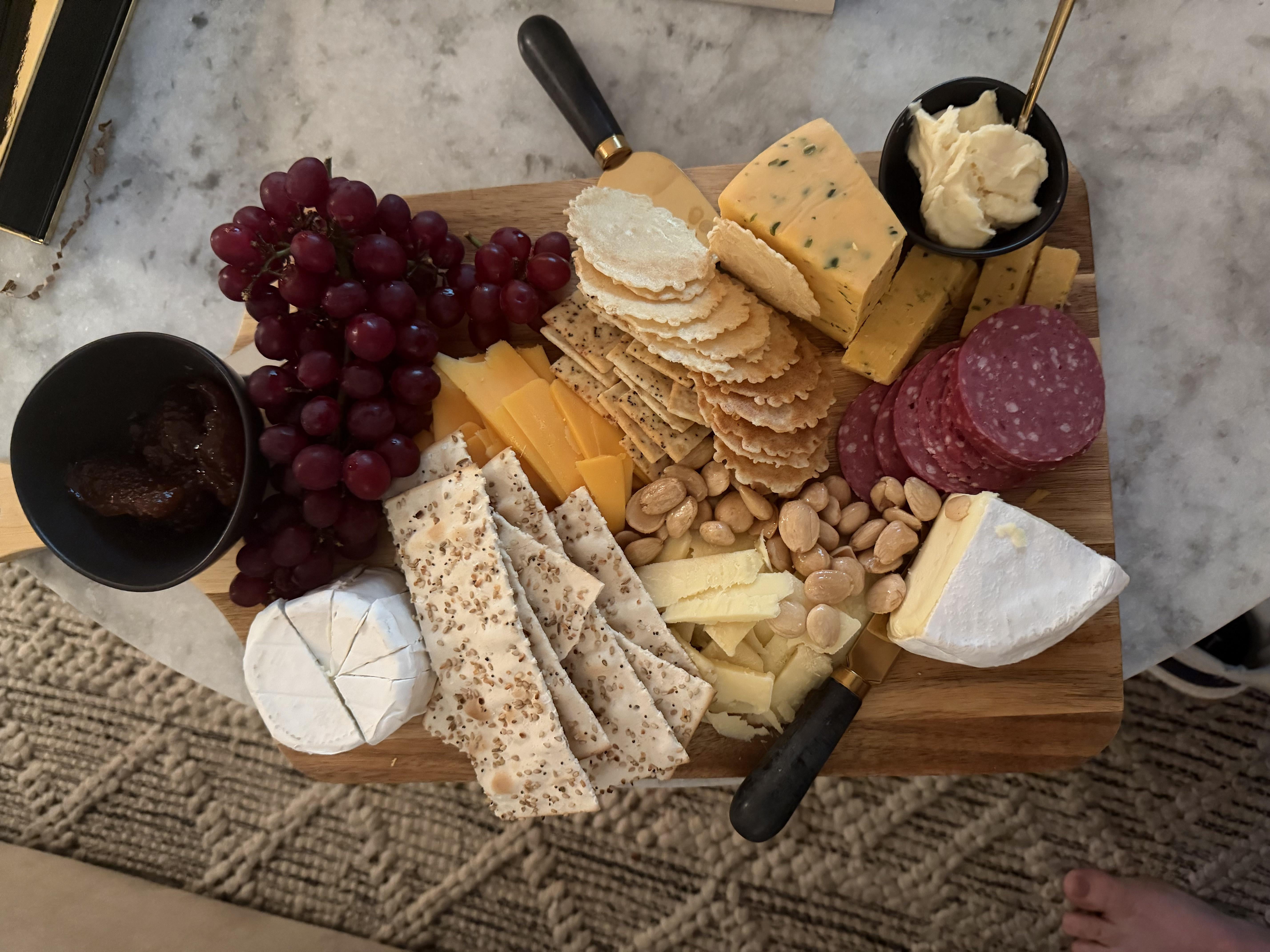 Being lazy on the couch today and my wife surprised me with this gem. If I had tried this it would be a sleeve of saltines and a container of Merkt’s with a butter knife. by WhatLittleDollar Charcuterie Charcuterie Board