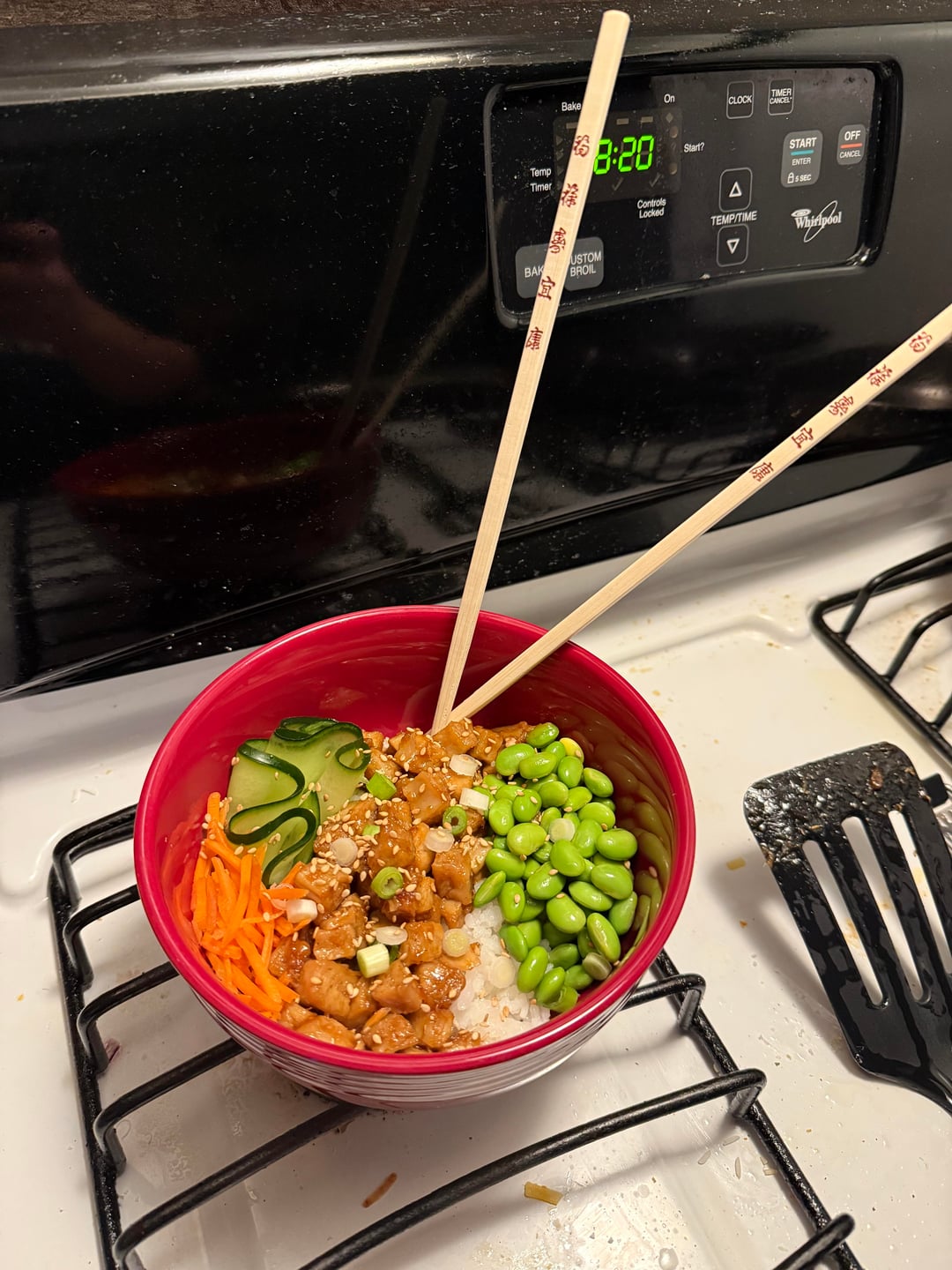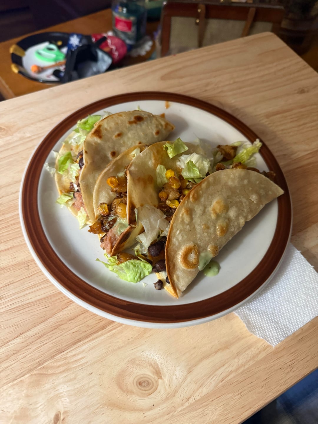 Spicy potato tacos, Dublin coddle (beyond sausage), poke bowl w daring diced chickn, gluten free bread w daring diced chickn and almond yogurt sauce with fresh arugula and kale, spicy rice noodle soup, chickpea stuffed bell peppers 🫑, crispy tofu and broccoli with rice