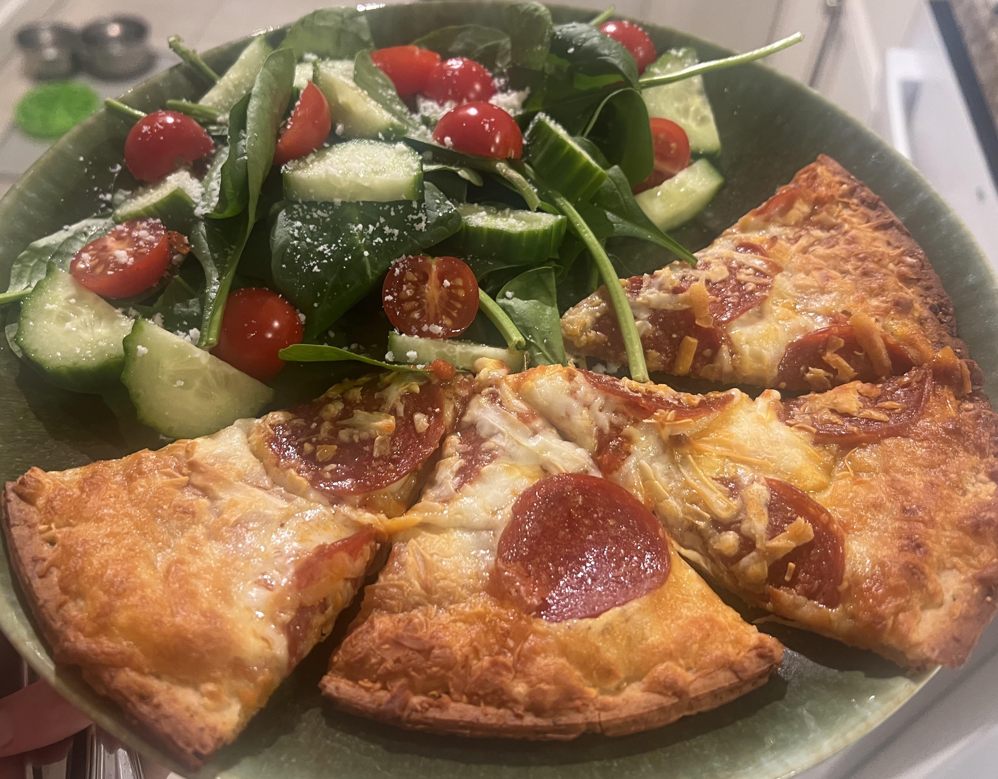 Milton’s GF cauliflower crust pizza with a side salad. So good! Idk why, but a side salad on any pizza is the best. by Bugaboobop Dinner Tonight Tonight's Dinner