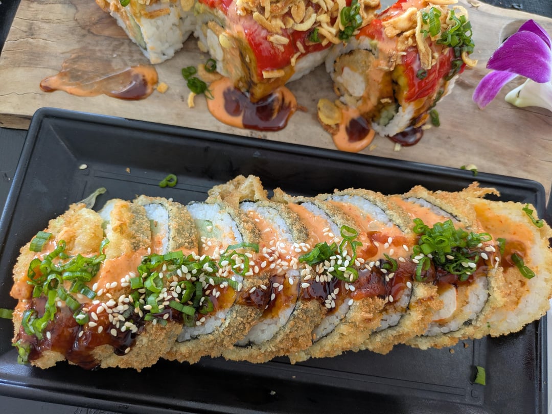 Vegan Castle, Long beach has some of the best sushi I've had yet! Volcano roll, red dragon roll, Long Beach roll, dessert roll, shrimp taco, and miso soup. by Skate_vvitch Vegan Food Vegan Food Porn