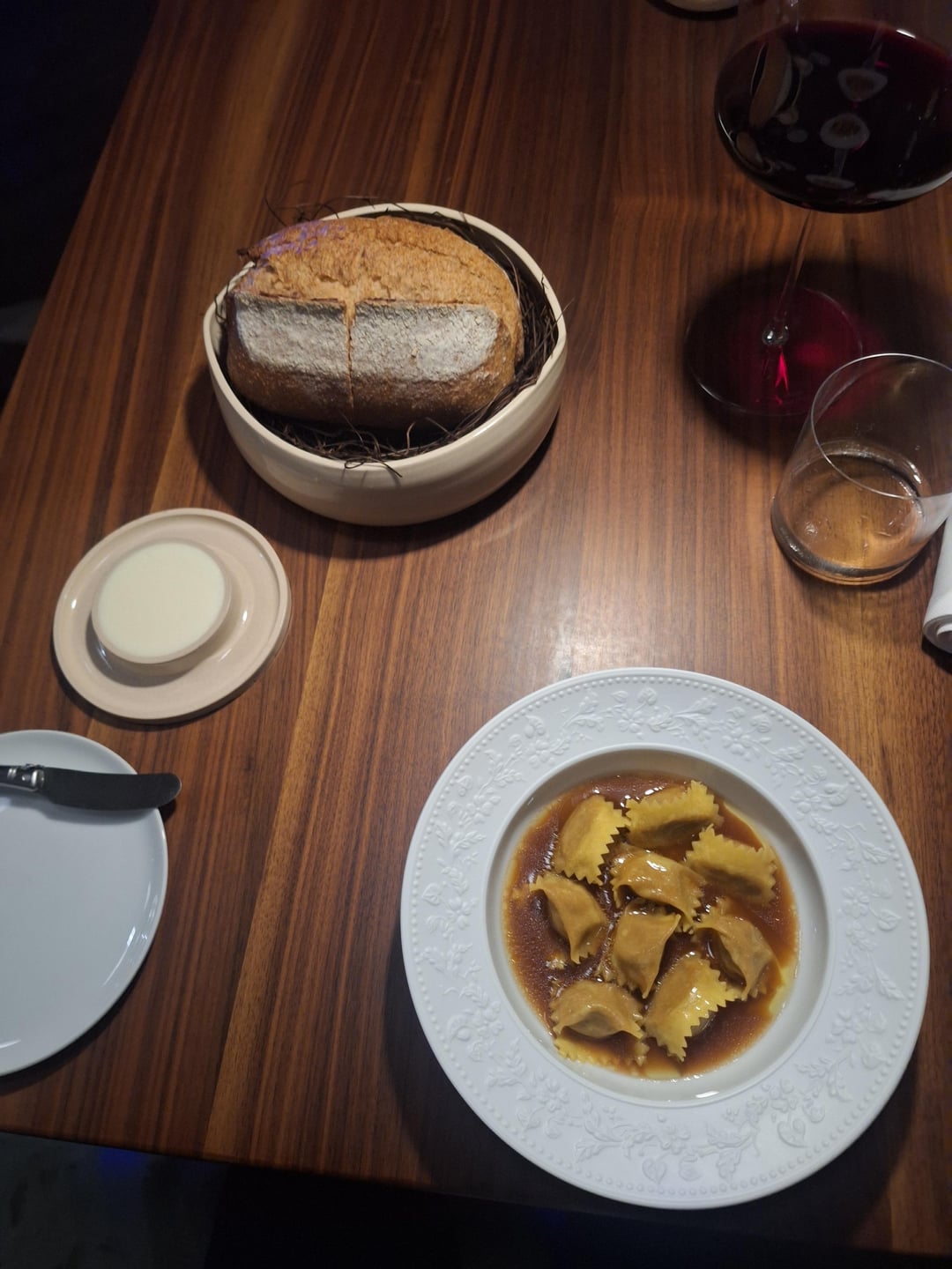 2. Primo: lamb ravioli in lamb broth with citrus, fresh bread, salted Italian butter