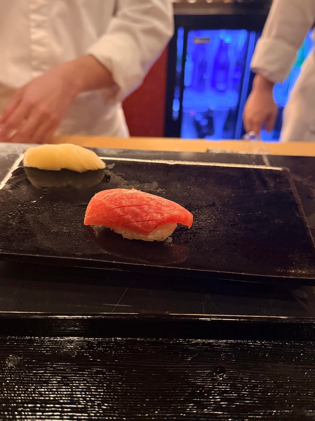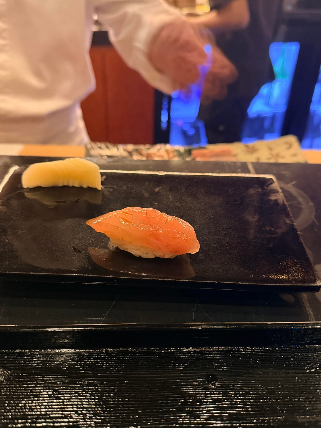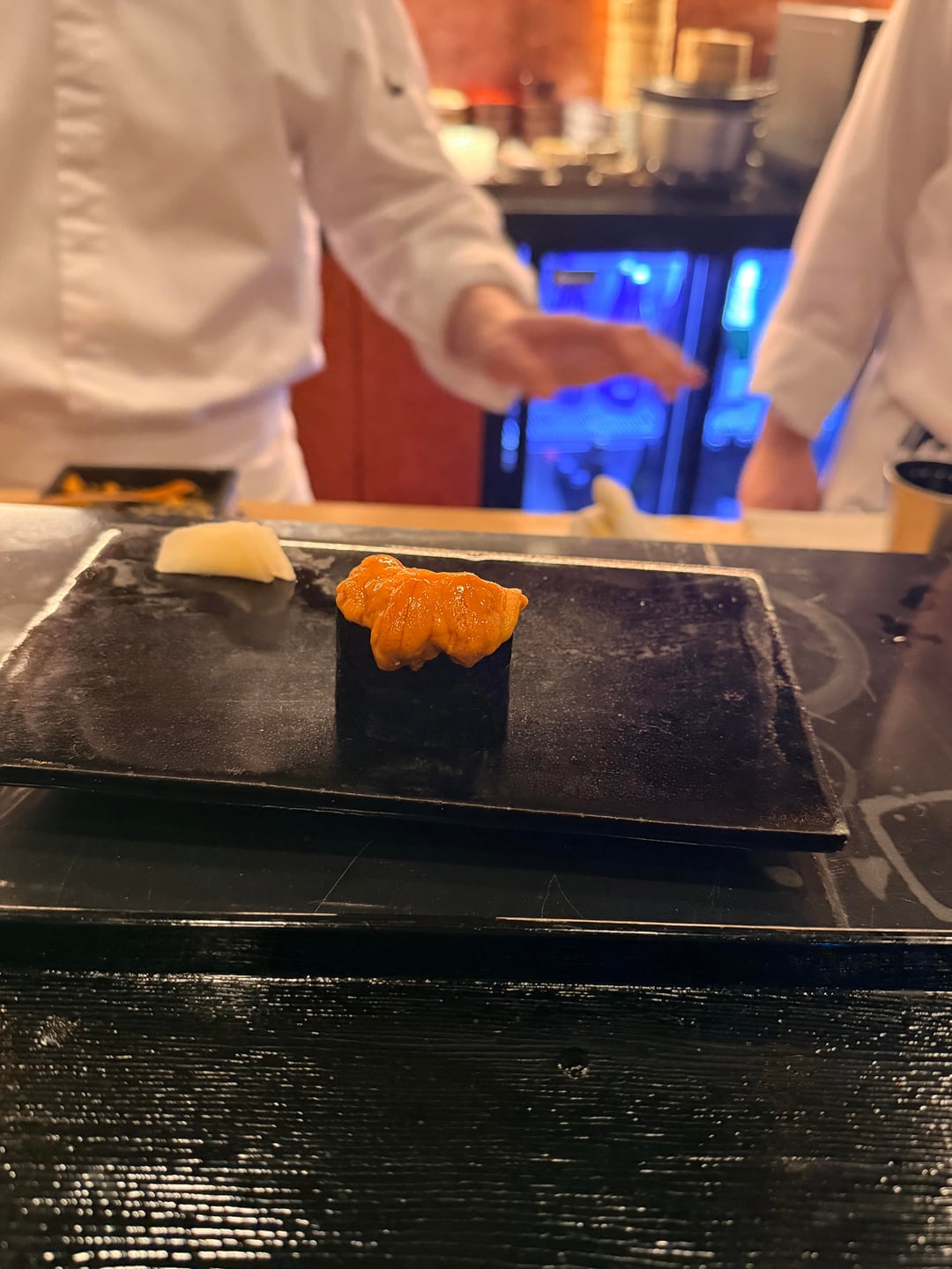 This was an amazing meal, and i’m very excited to see what Chef Gang does when he eventually opens his own place. The otsumami was all chinese-inspired and extremely soothing to eat, his rice is mild (I usually prefer stronger rice) but still really good and nigiri was excellent. He also had an excellent tuna handroll that i didn’t take a picture of where he mixes the tuna with water chestnuts instead of daikon radish that was amazing. The ankimo is prepared the exact same way as Yoshino as well. Chef Gang himself is also an amazing personality – he’s constantly making conversation in three different languages and he’s super energetic.