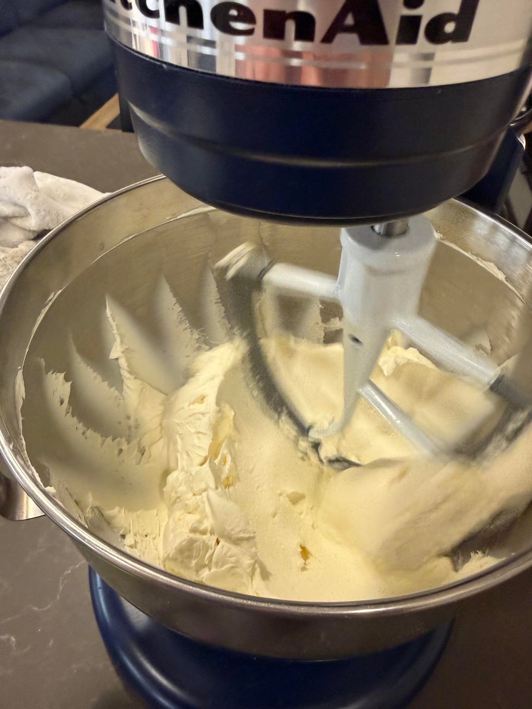 Scrape bowl down then back to low.