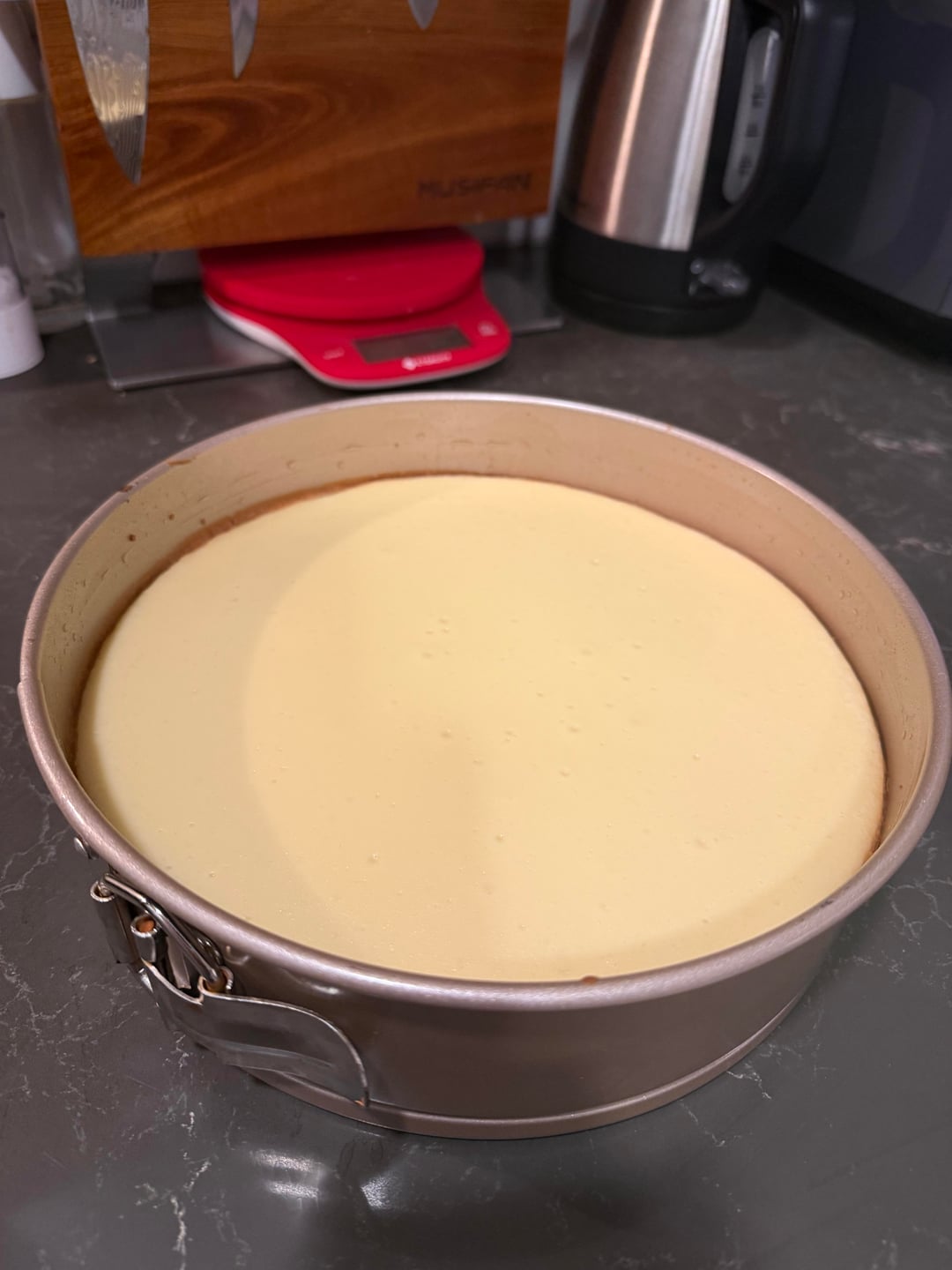 Then, set oven to 300° and cook 30-45 minutes or until center wobbles slightly
