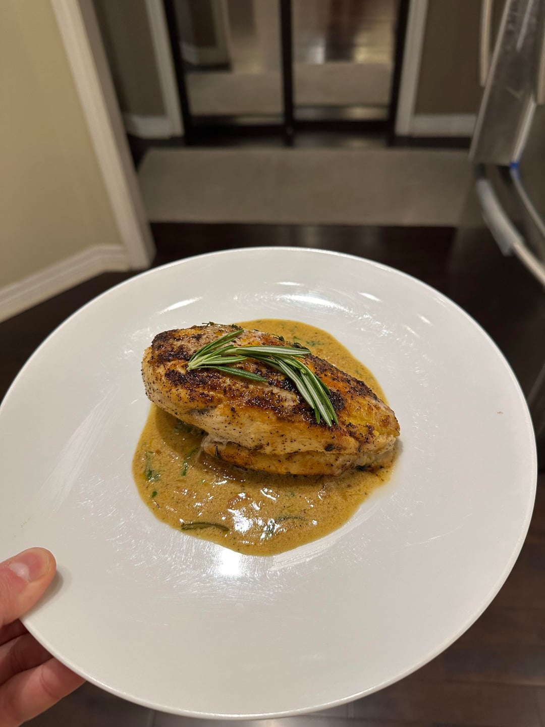 Starting to teach myself how to cook: pan roasted chicken breast with a Dijon mustard pan sauce by Shtangss Dinner Tonight Tonight's Dinner