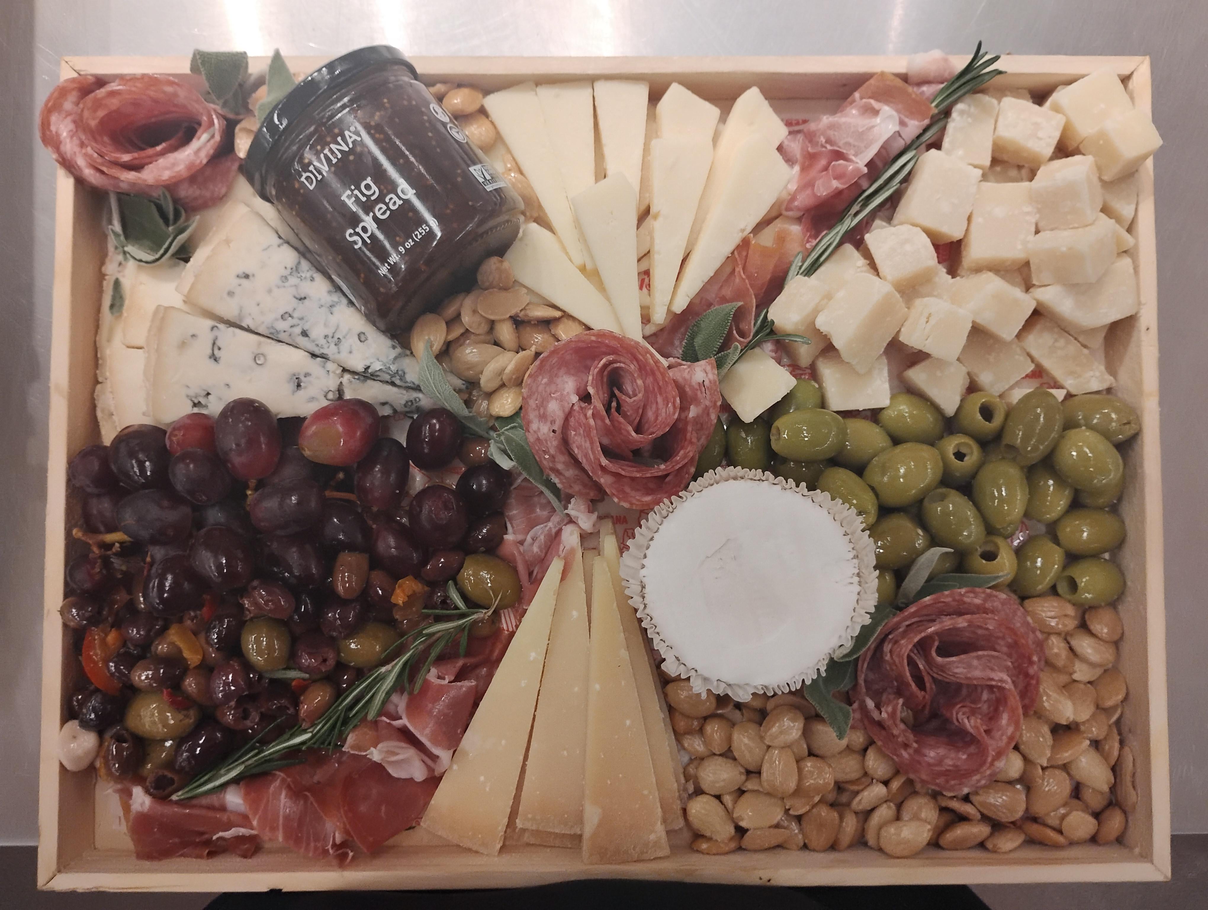 Cheesese are: gorgonzola mountain, asiago, parmigiano, Saint Andre brie, copper kettle parmesan. Meat: prosciutto and sopressata. Extras: Red grapes, frescatrano olives, olive mix, and marcona almonds by Sonnyjoon91 Charcuterie Charcuterie Board