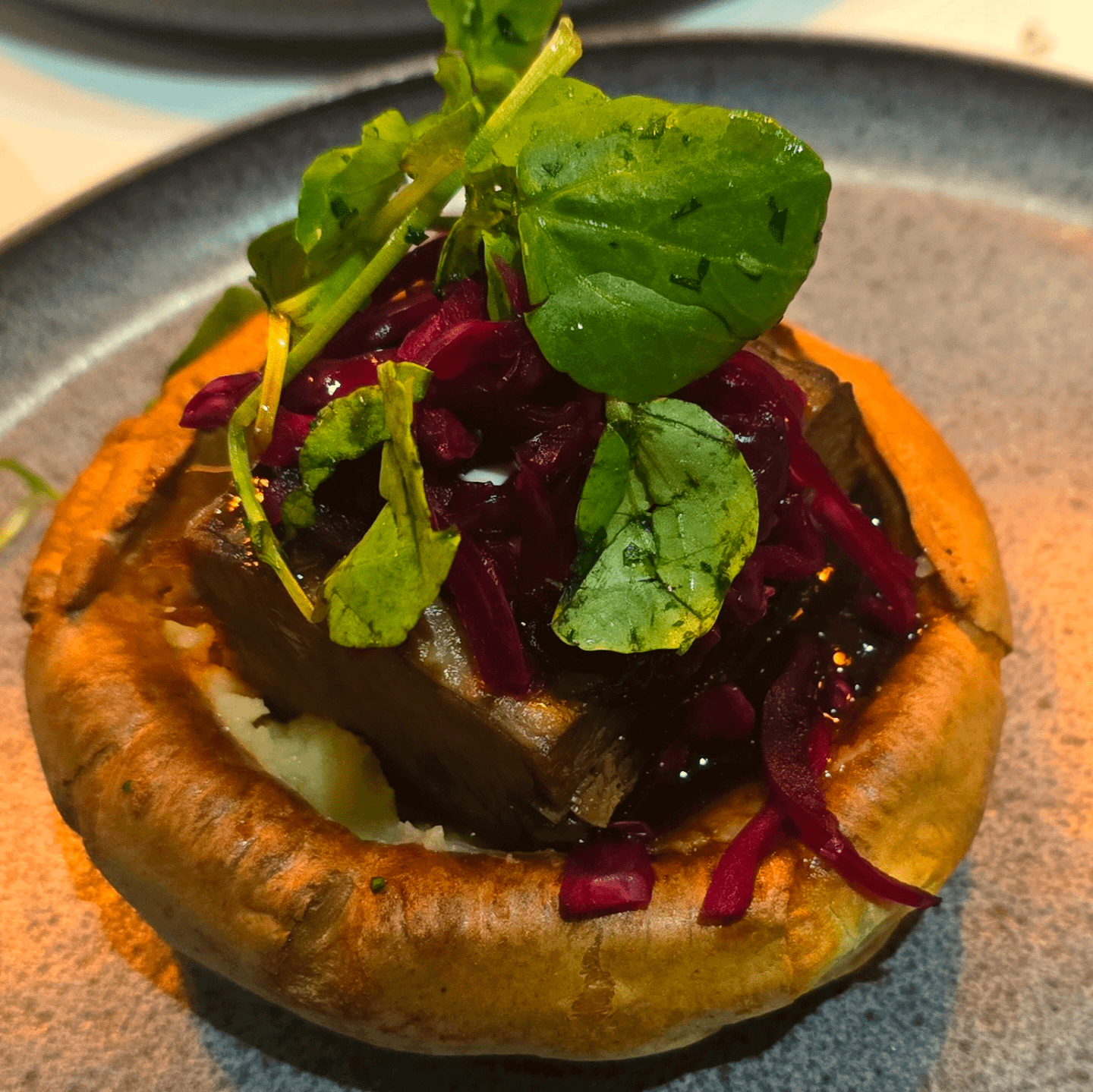 * **Vessel:** Large Yorkshire Pudding (cooked in Beef Dripping)