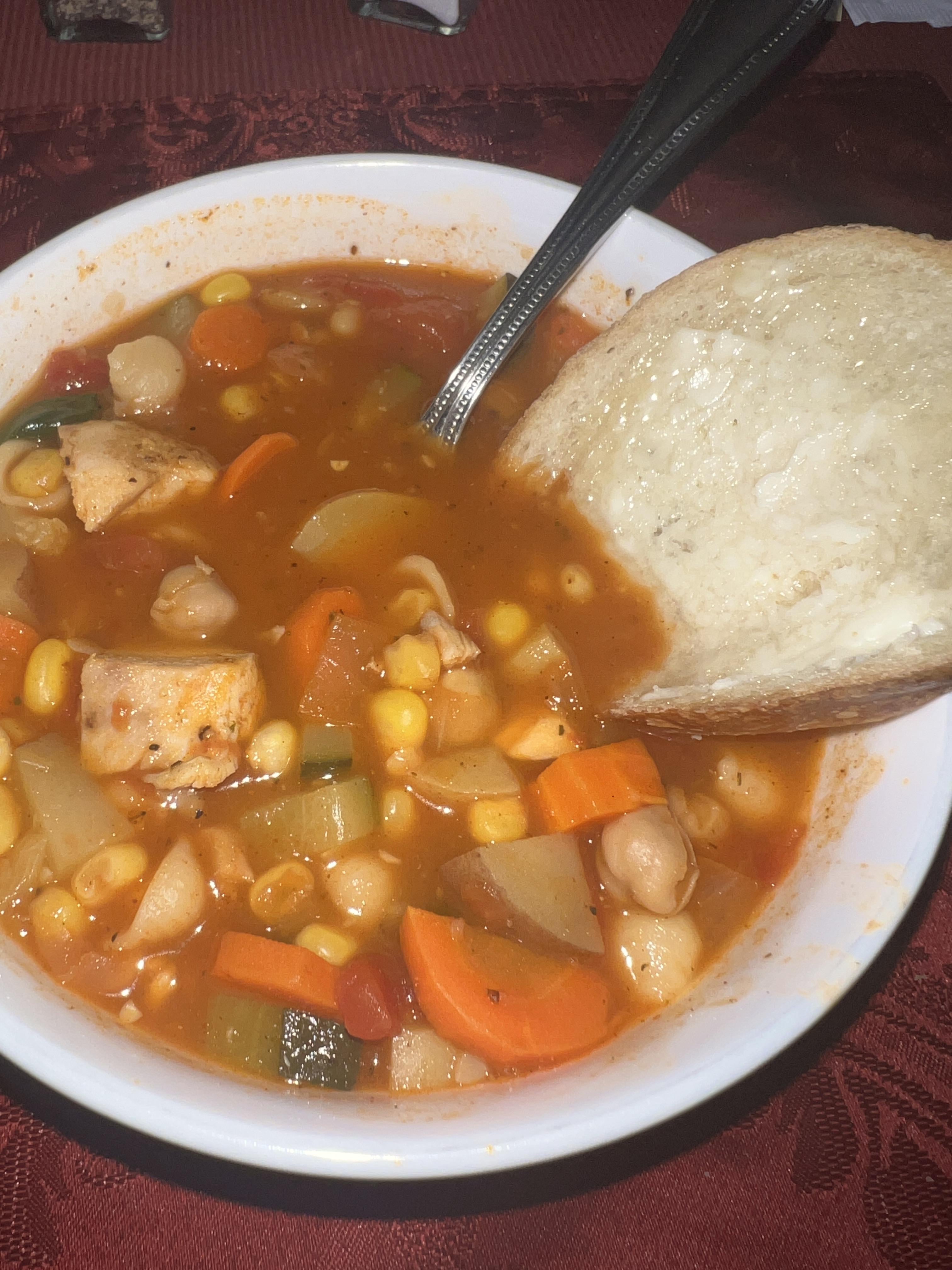 I could swear the meal they serve included a chicken and minestrone soup.