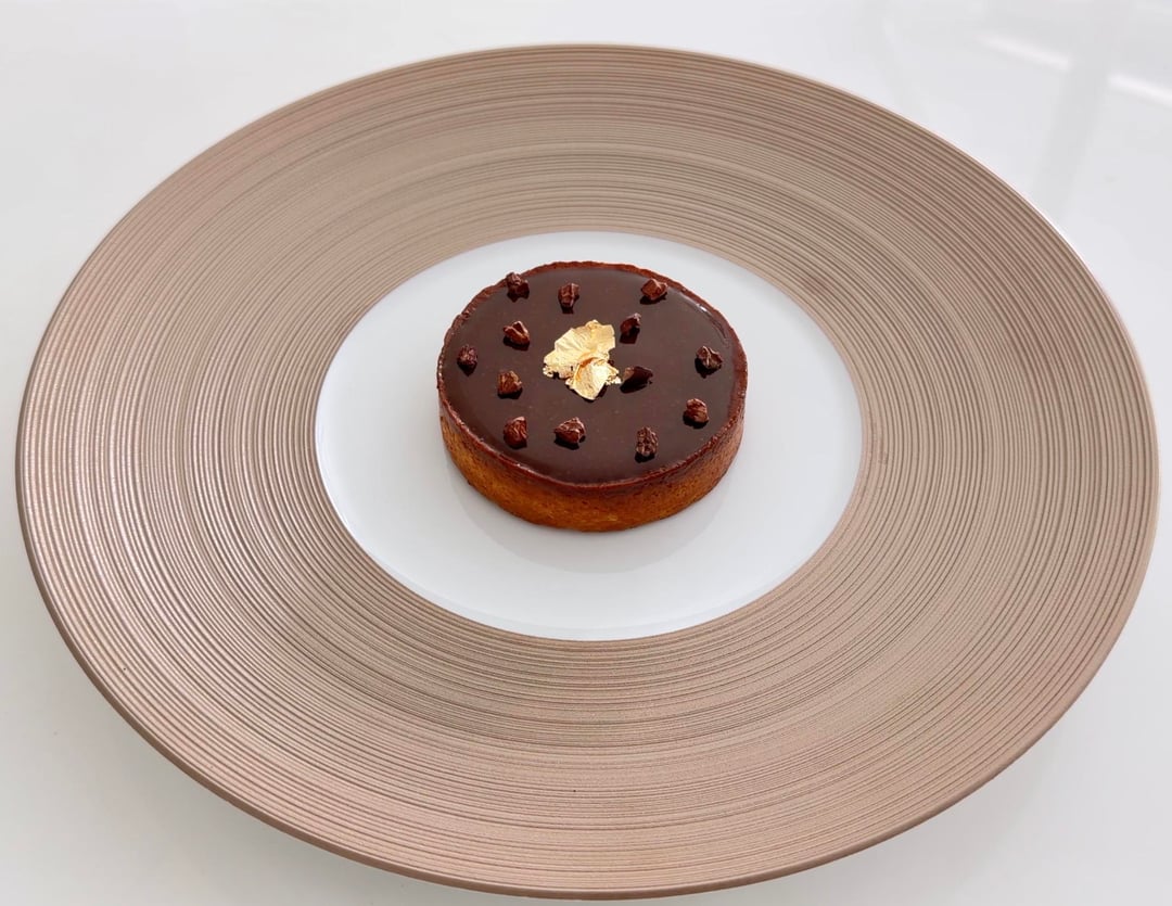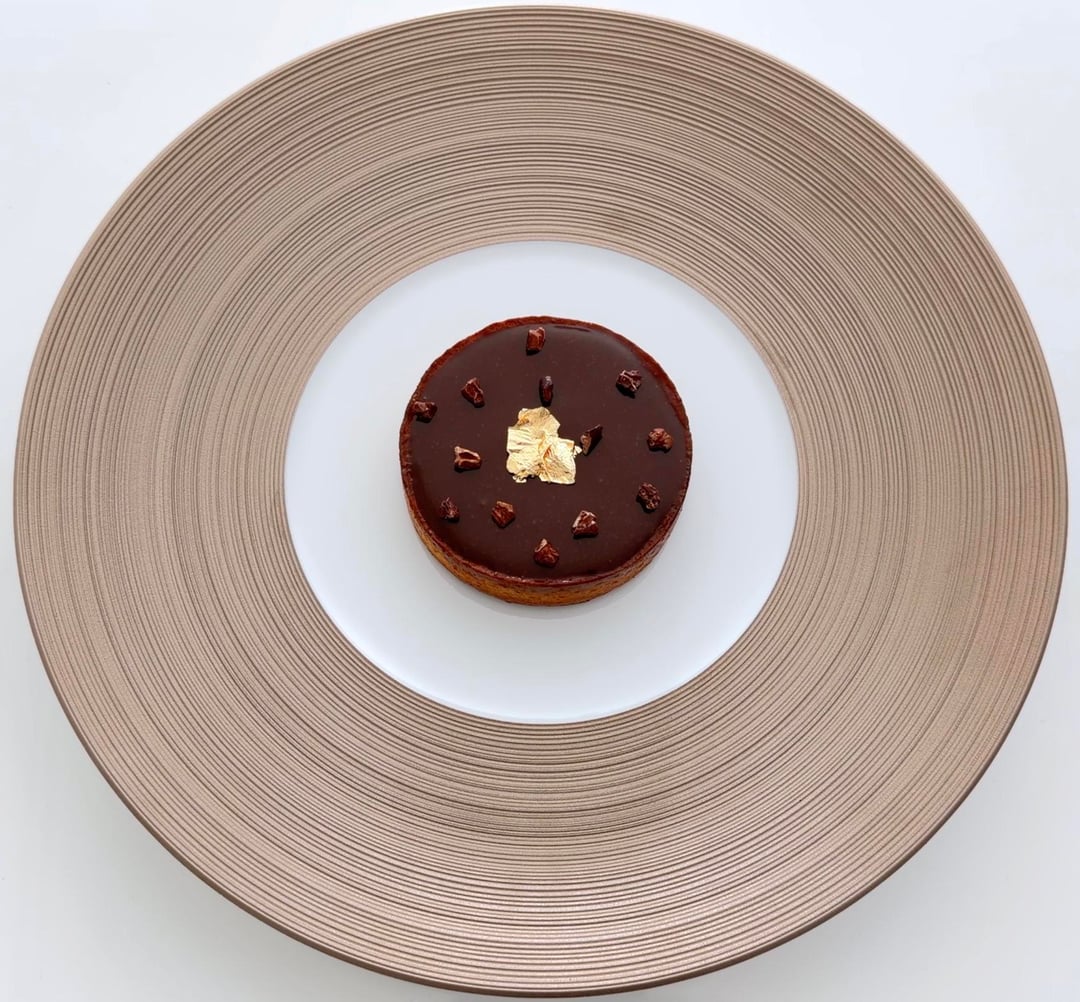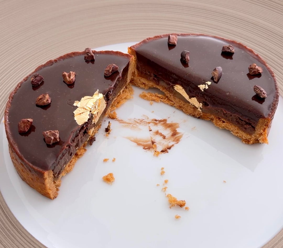 Shortcrust Tartlet with Salted Caramel, Chocolate Cremeux, Chocolate Mirror Glaze & Roasted Cocoa Nibs by Hai_Cooking Culinary Culinary Plating
