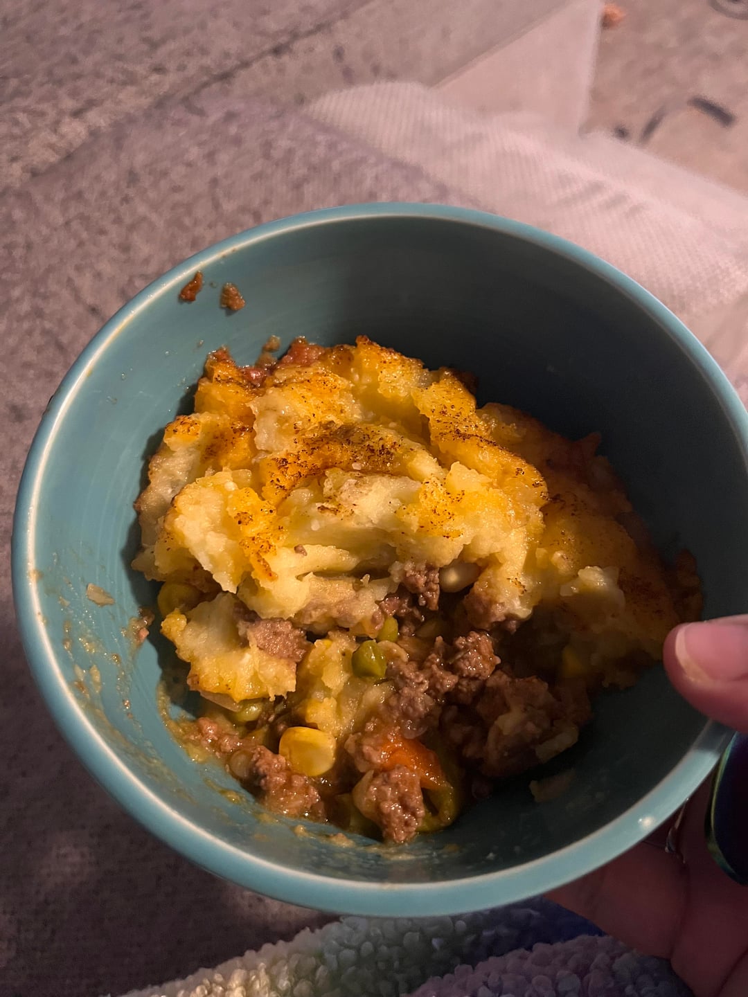 PoquitoChef on January 20, 2026 3:02 am Used this [recipe](https://tastesbetterfromscratch.com/cottage-pie/) as a guide: I only used ground beef, frozen veggie mix and had a quart of mashed potatoes leftover from Thanksgiving. Paprika on top.