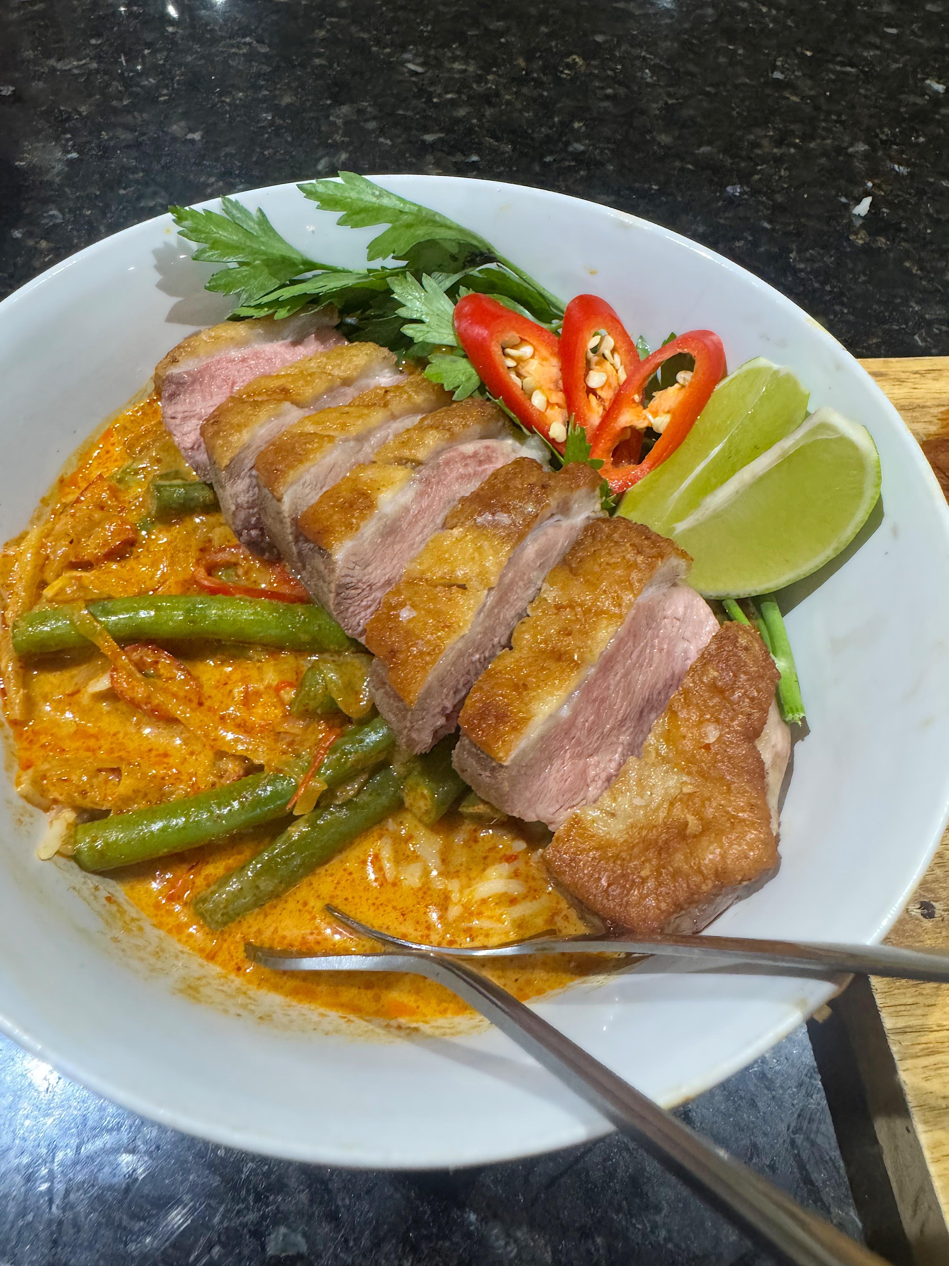 I made Red Duck Curry with Lychees [homemade]