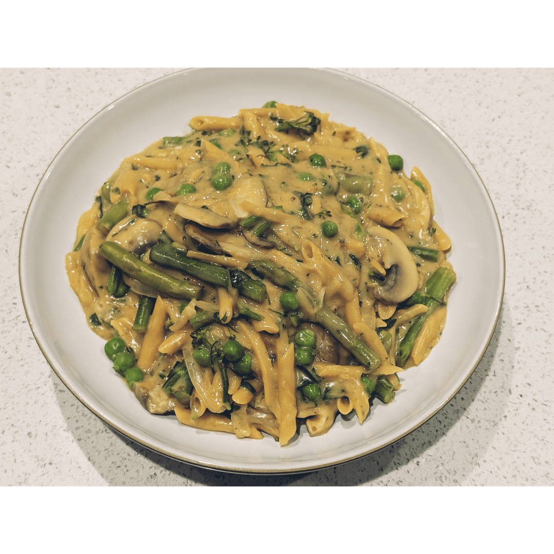 I love to make this with pea pasta for extra protein but it works well with wheat pasta too. I used soy yoghurt but coconut cream tastes amazing if you have the calories to spare. Cashew cream is also good!