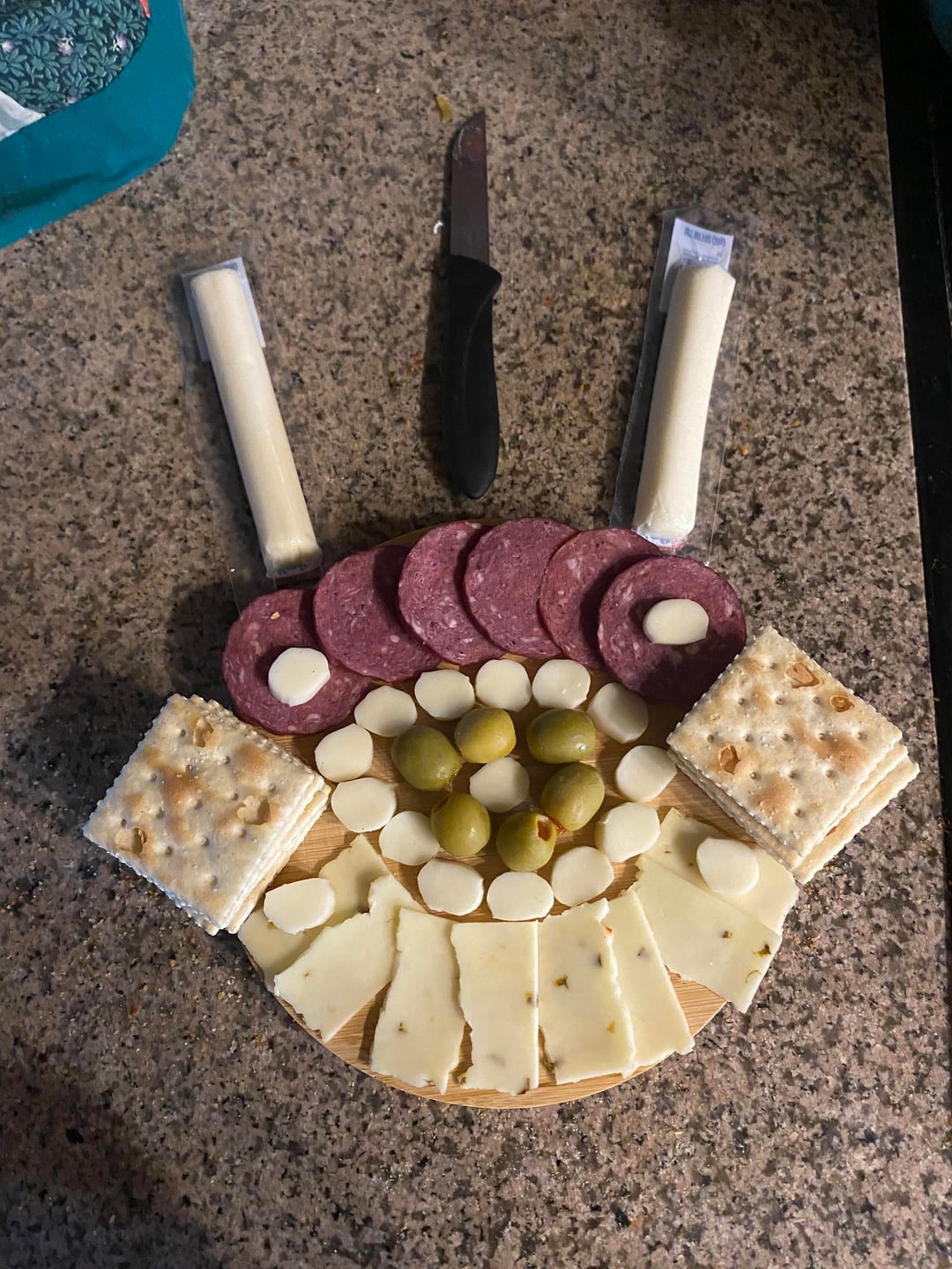 made with saltine crackers, deer meat, pepper jack cheese, mozzarella cheese and stuffed manzanilla olives with pimiento by Such_Square_7771 Charcuterie Charcuterie Board