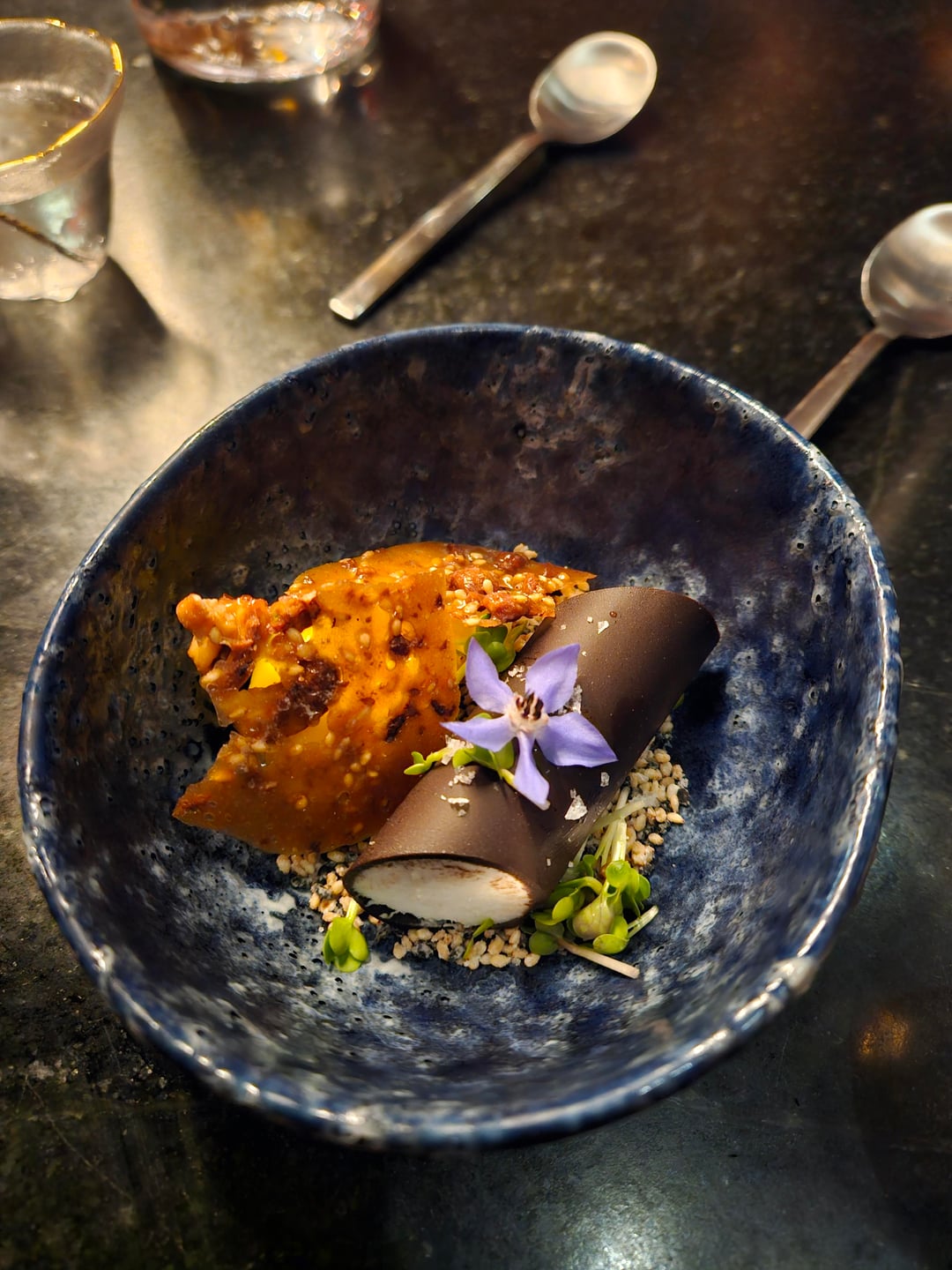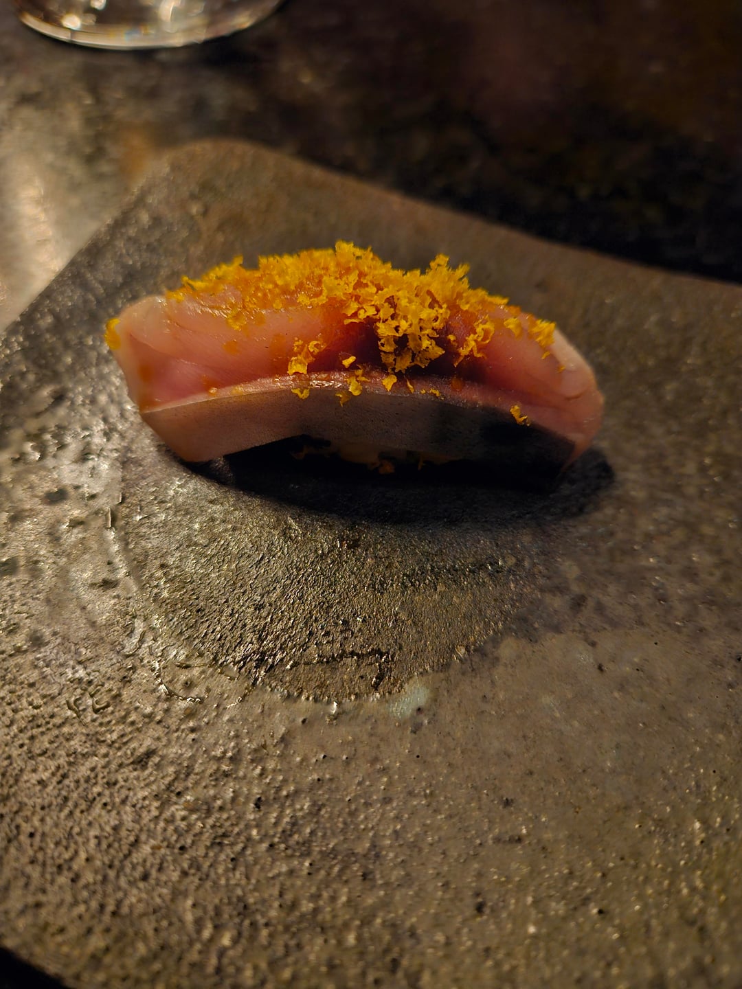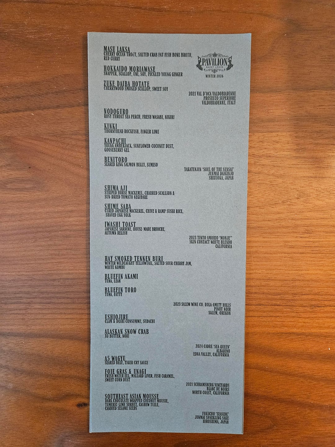 Pavilion is an Omakase experience in St. Louis by Nick Bognar, it was 18 courses and lasted about 3 hours. The cost for 2 people at the sushi bar with supplements, beverage pairing, gratuity, and tax ended up at about $800 USD.