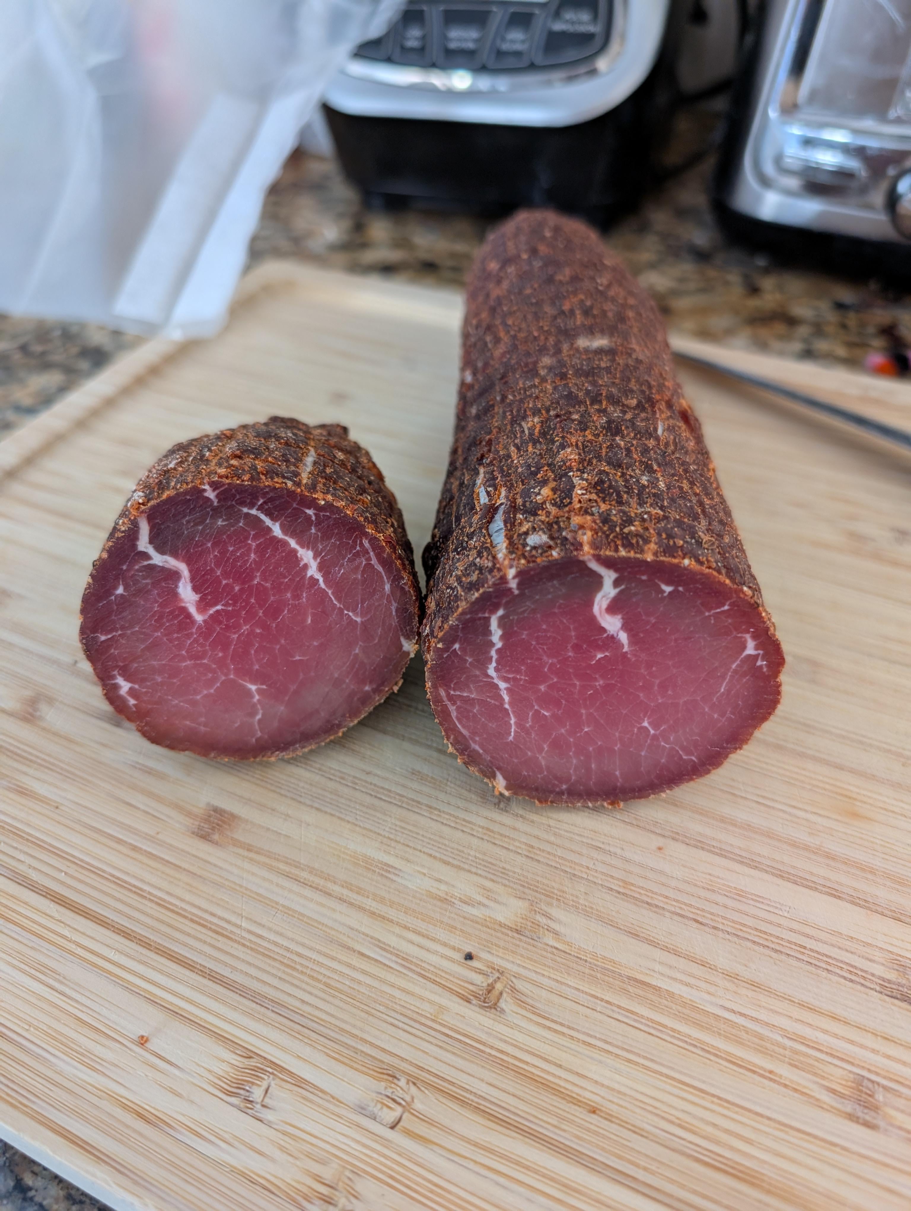 2. Is it over 30 days? If so, that looks delicious. If it’s less than 30 days, wait until after. If the center isn’t mushy, just vac seal it up until 30 days has gone by. You’ve got a little bit of case hardening that with EQ during the seal (I seal up everything for a few weeks in the fridge before I cut it open, just to let it equalize a bit.