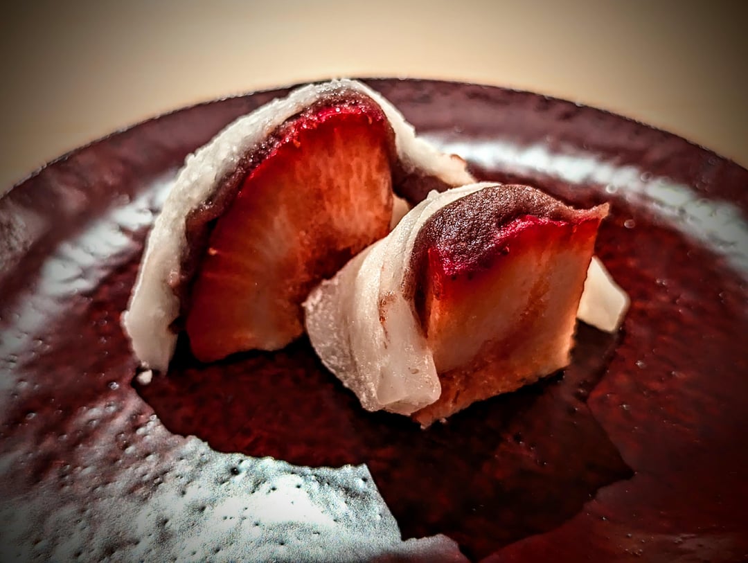 Those menu items that did not hit the same heights as those mentioned above I consider to be easily elevated with some minor adjustments. The hand roll of unagi (they would like to get anago, but sourcing proves too difficult, so unagi has to suffice) would benefit from less Japanese cucumber, as the crunchy texture overwhelms the fluffy softness of the unagi (which is achieved by first grilling the unagi, then steaming, and then grilling once more). The final dessert, daifuku with strawberry, has the mochi draped over the strawberry; better to enclose it fully, not only to get more of the chewy mochi in the bite, but also to aid in presentation.