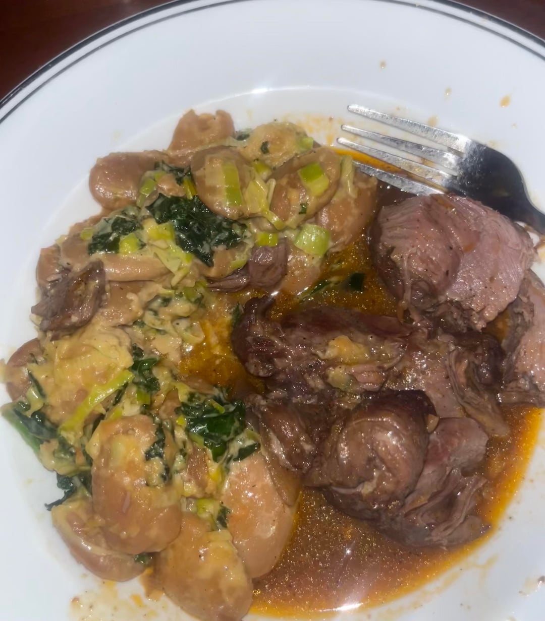3. Braised lamb leg w/ cannellini beans, leeks, + kale