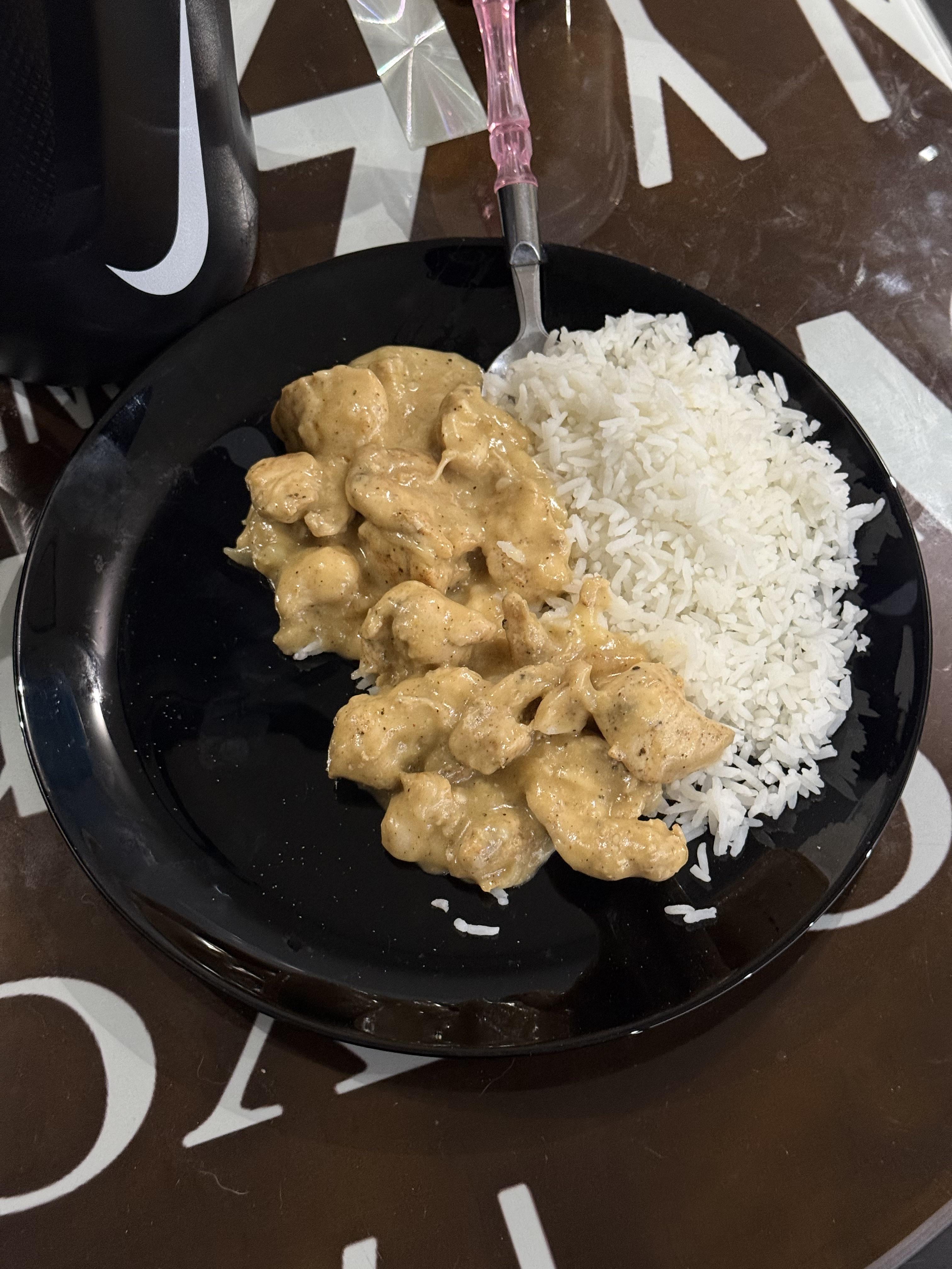 Made this today, chicken with white sauce and rice cause spaghetti is too heavy for the night by gotikfromhell Food Porn