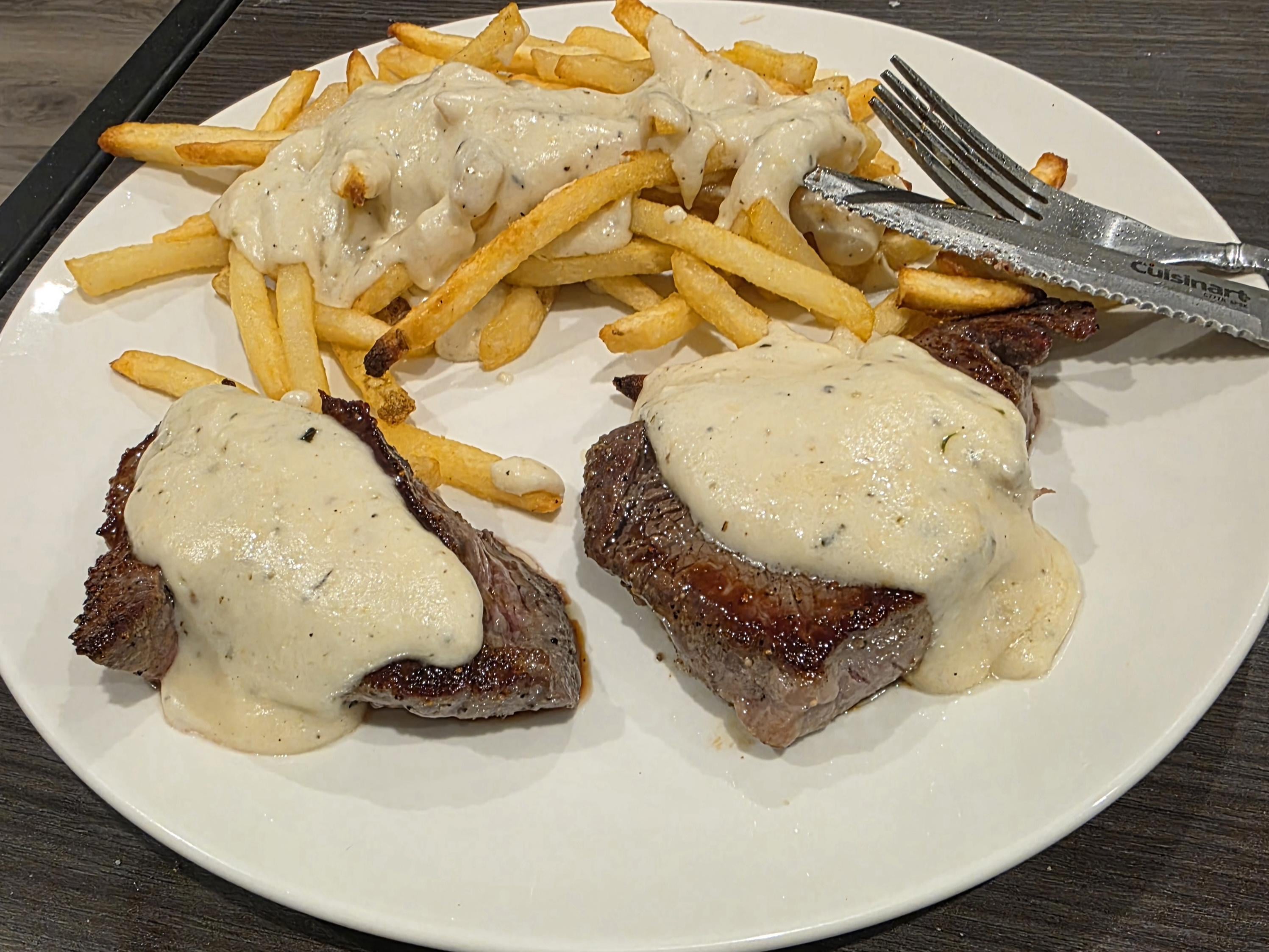 Novice cook. Tried making a cream sauce with my steak and frozen fries. by LazyNomad63 Dinner Tonight Tonight's Dinner