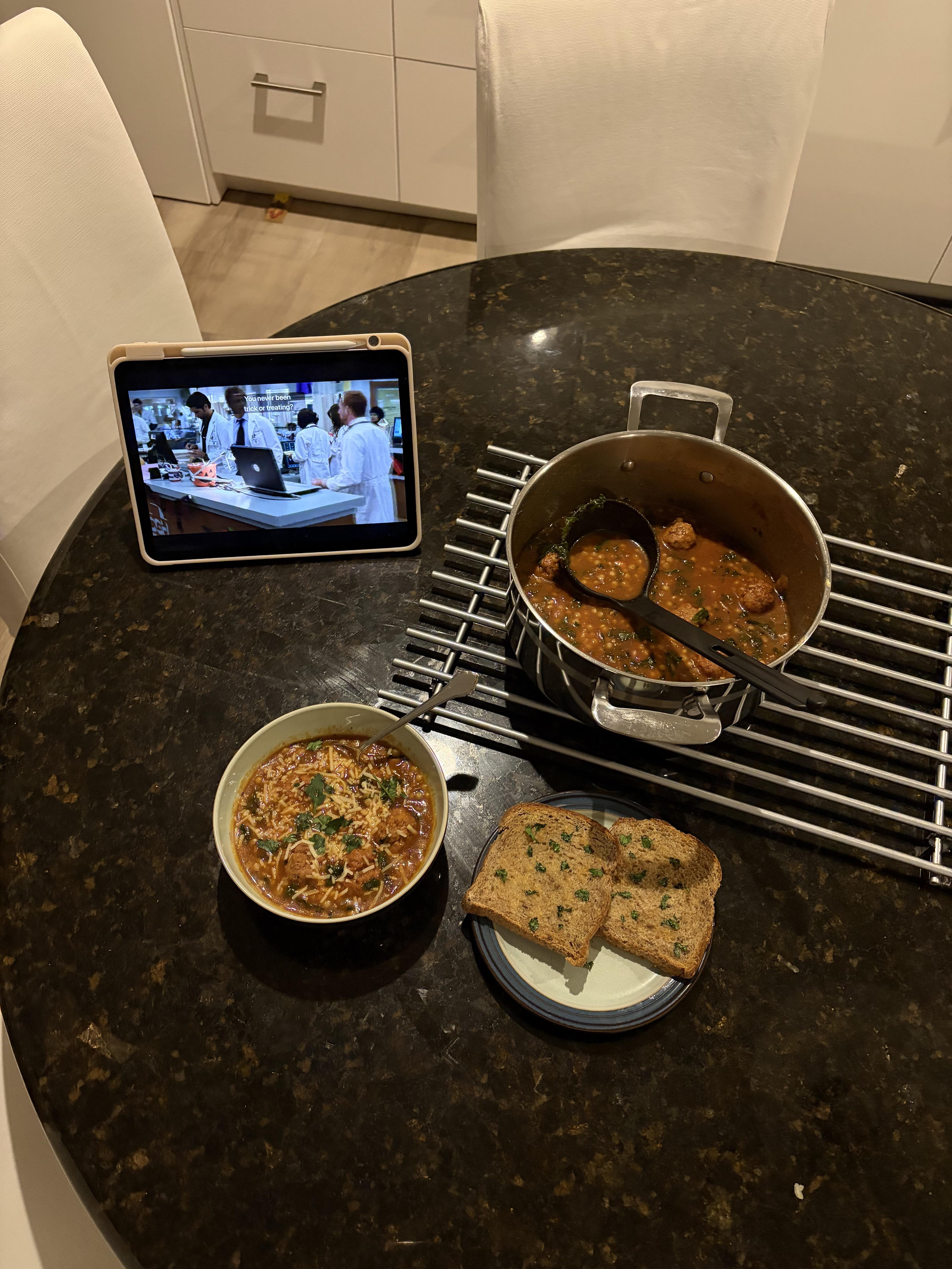 Sausage meatball minestrone and poor mans garlic bread :)) by cranberry8ginger8ale Dinner Tonight Tonight's Dinner