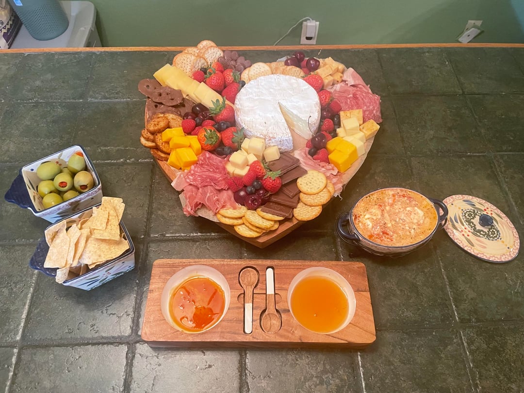 Long time lurker, first time poster. Made a board with a Valentine’s Day theme. Looking for insight on how I did and what sort of plating would look best? I have extra dishes, but couldn’t decide if the layout was better with only 1 extra dish, all, or none. Any tips/insight would be appreciated 🙂