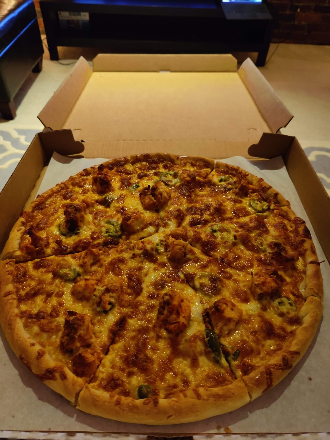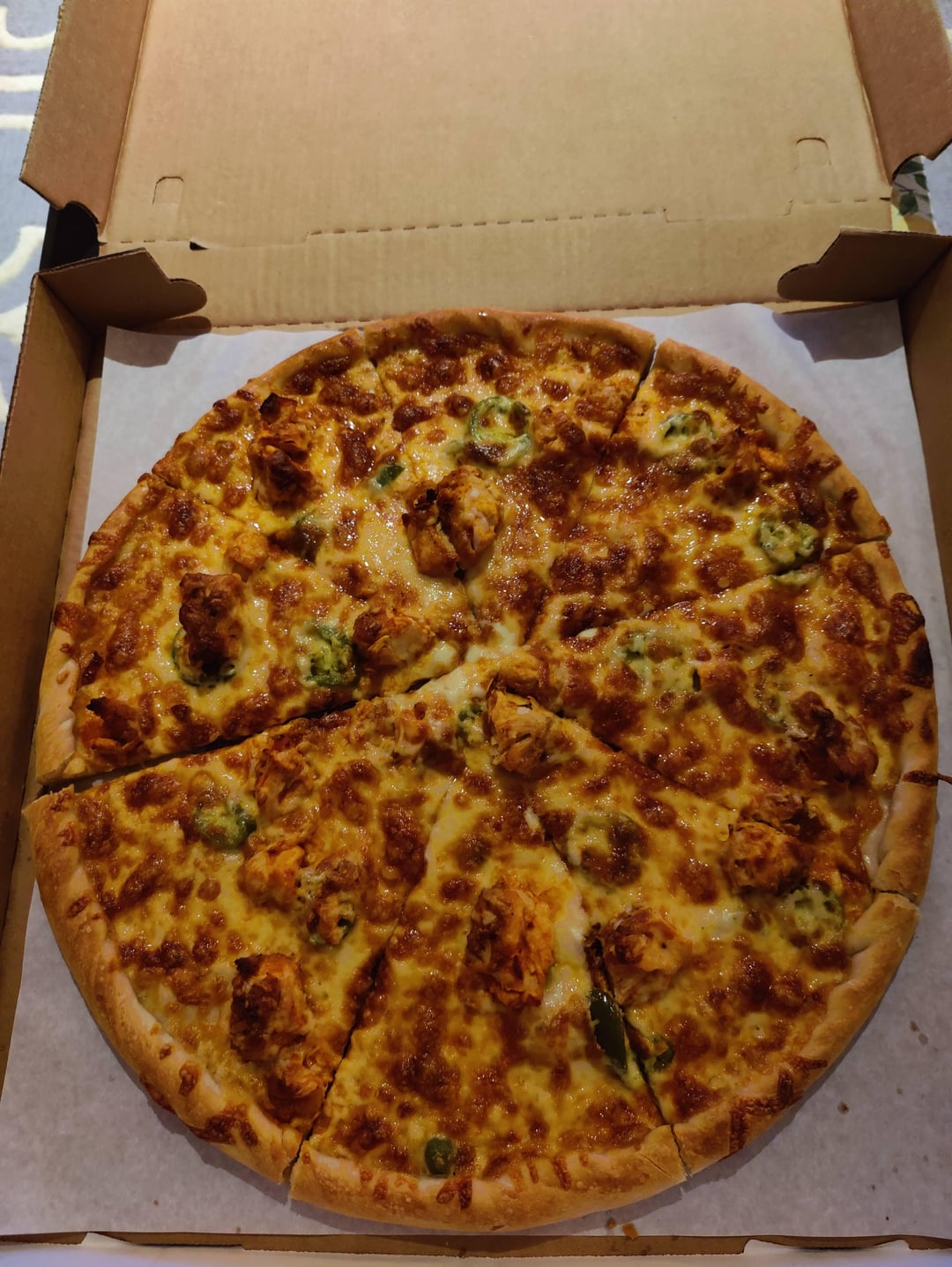 Loads of ranch sauce, jalapenos and buffalo chicken.
