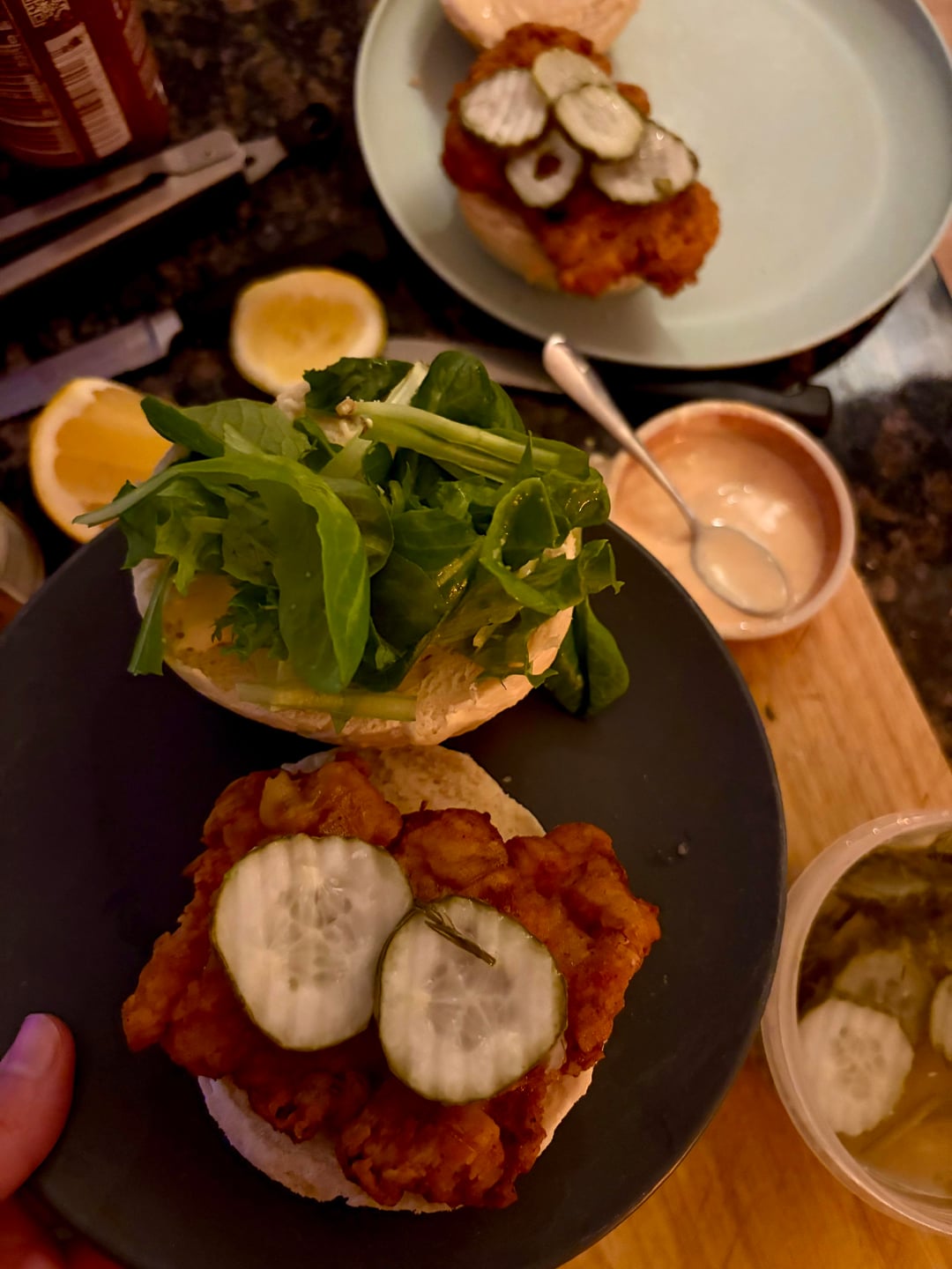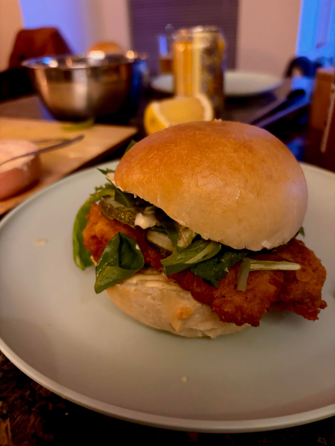 [homemade] friend chicken sandwiches with homemade buns