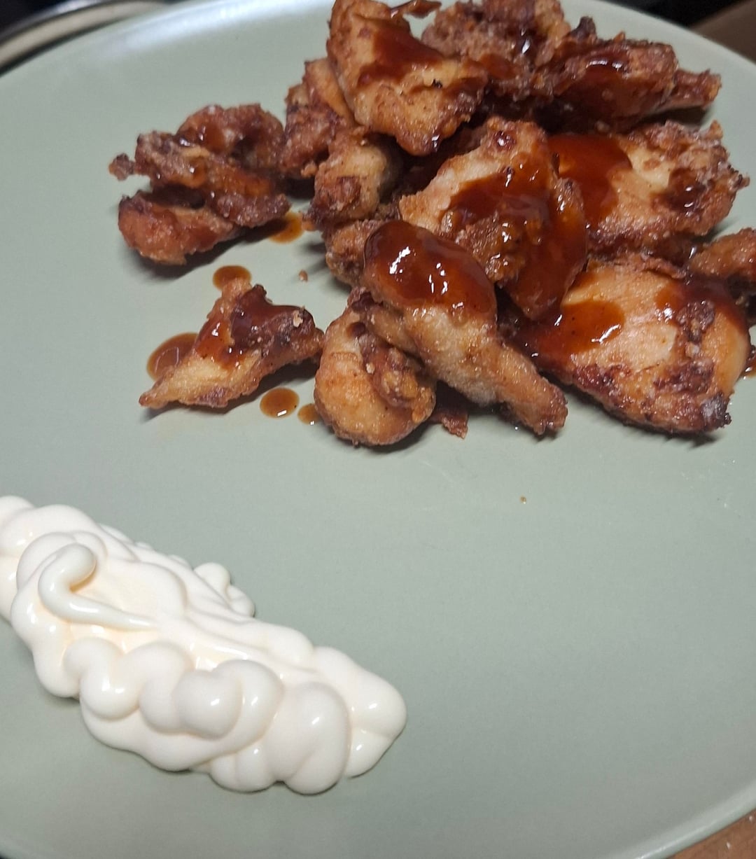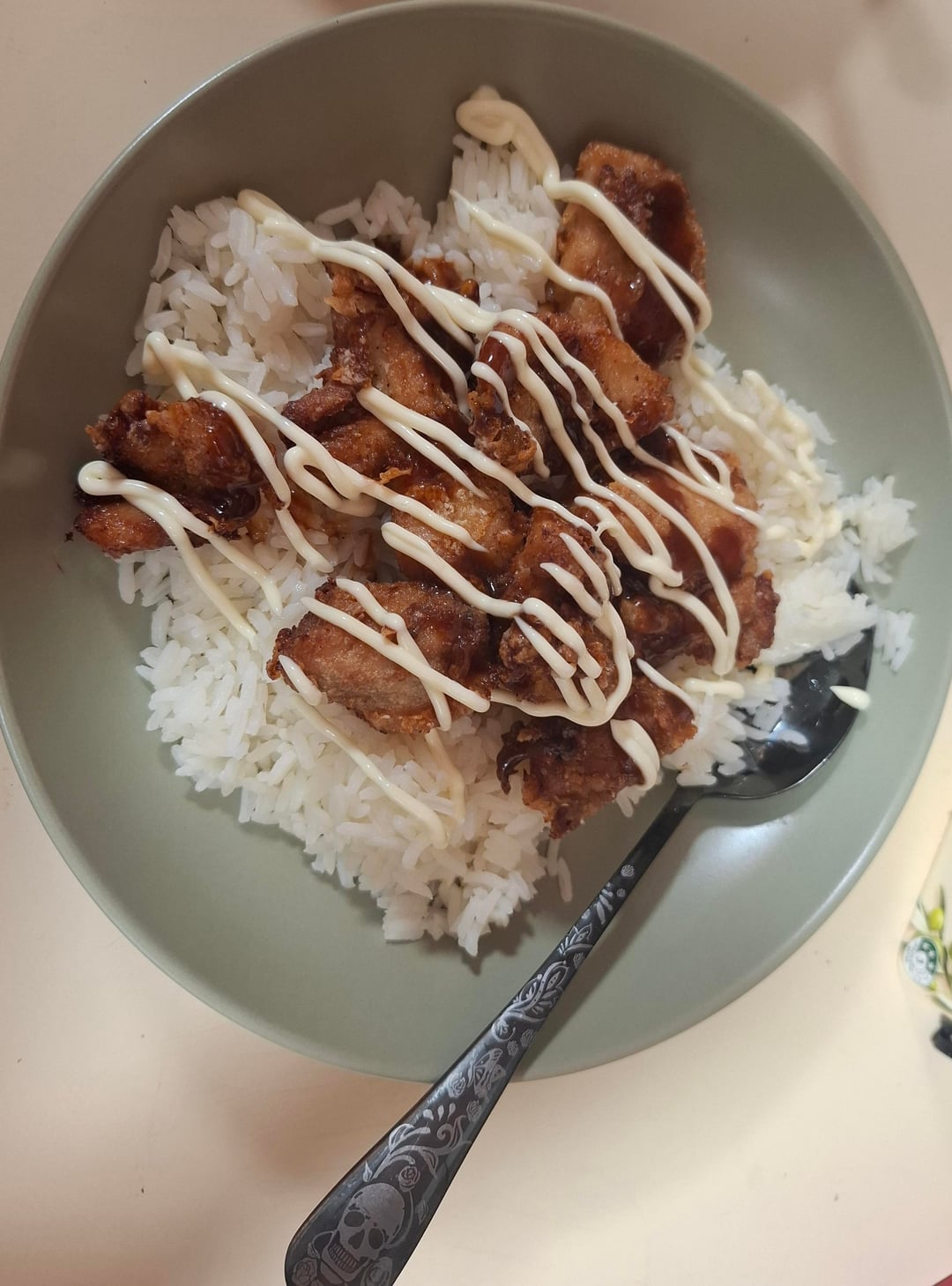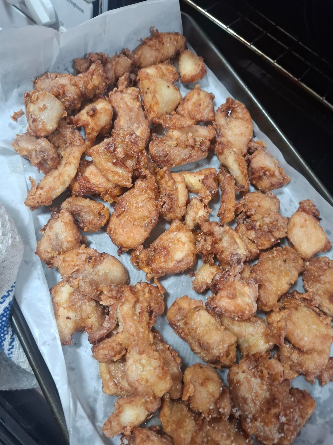 As a side note, I marinated the chicken for a few hours prior to frying. The marinade was made of soy sauce, mirin, cooking sake and freshly grated ginger. I fried the chicken twice in cornflour.