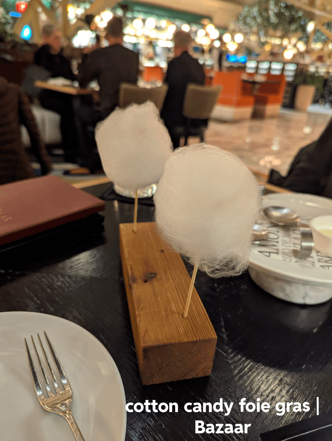 Food was spectacular. Service was the best, perhaps only topped by the staff at Joel Robuchon's gracefulness. The highlights were the carrot tartare, the fish, and milk and honey dessert but everything was good. The carrot tartare was wonderfully done and the mustard vinegar was delicious and the perfect blend of heat and sweetness. The tilefish was one of the better sauces I've ever had and the citrus on top was a fun refreshing topping. It was my favorite fish dish/bite I have ever had. Milk and honey dish from NoMad was perfect texture and flavors. Sweet but not sickeningly sweet, it was one of my favorite desserts of the trip. The honey lavender duck was good, but nothing too outstanding compared to other notable dishes in this genre. I didn't understand why it was so hyped up beforehand but it was still a very good piece of duck. The mushroom option was far better with the perfect crisp edges. Some critiques were the bread was just ok (very oily), the after dinner digestif was eh, the black and white cookie was underwhelming. Vegan sunflower butter is good, but real butter is better. Despite these small critiques, it was a lovely experience that we cannot wait to do again. If you are in New York and go eat out at fine dining a lot, please go. Perhaps it was the whirlwind of fine dining over the course of just a few days, but it was a refreshingly unique experience that you cannot get in most places, whereas waygu/lamb/langoustine etc is found in every fine dining restaurant in the world. The kitchen tour was fun and the little green apple maple syrup on a stick was fitting for winter and very tasty. I felt they went over the top in gifts but I am not complaining. The cards have a watercolor image of each dish and are so much better than a traditional printed menu. The granola is amazing. If it didn't cost an arm and a leg I would eat it every morning. Favorite restaurant of not only the trip but NYC in general. It might be recency bias but it might be 2nd to Joel Robuchon in my overall ranking. *note I have only been here once, whereas other places I mention I have been to before and some too many times but this one experience was brilliant and I can't believe I let a few reviews make me avoid this place for this long