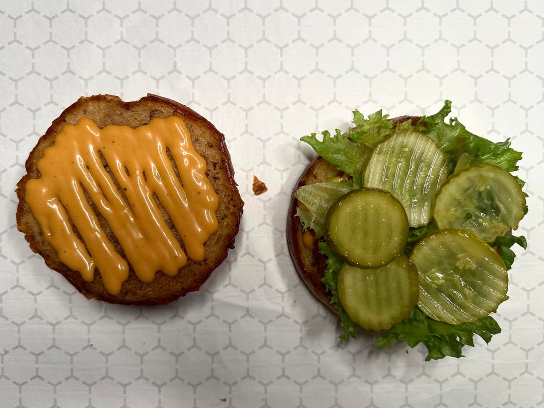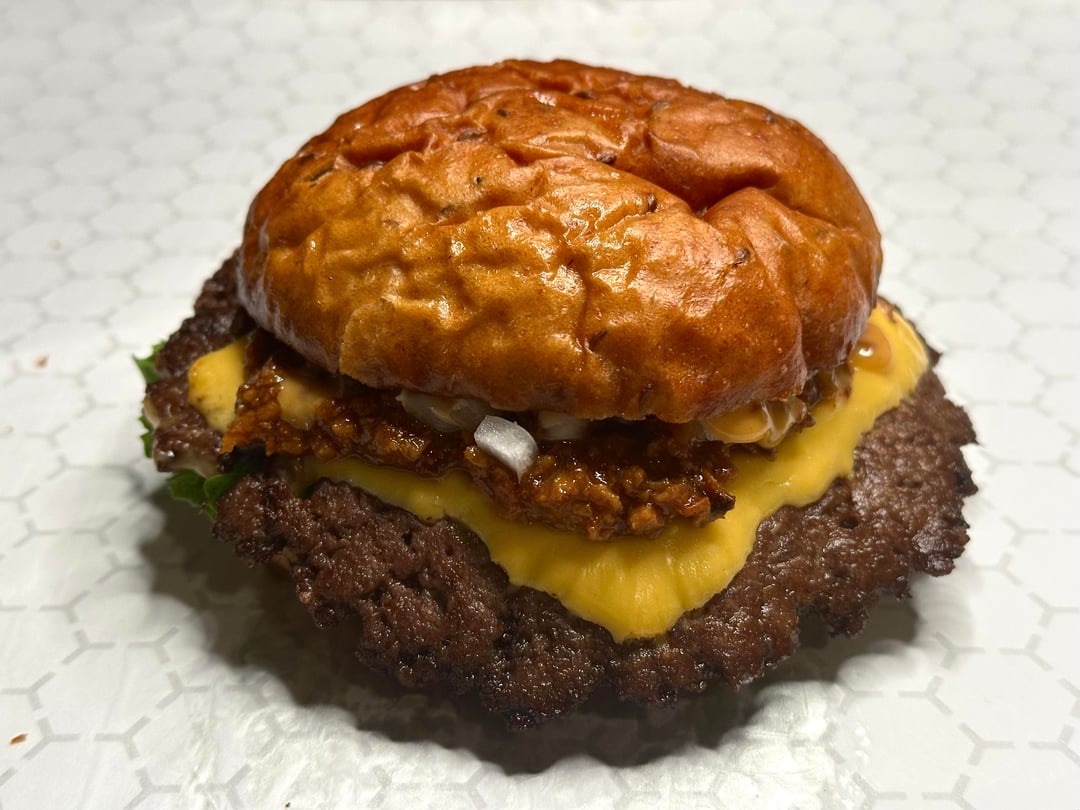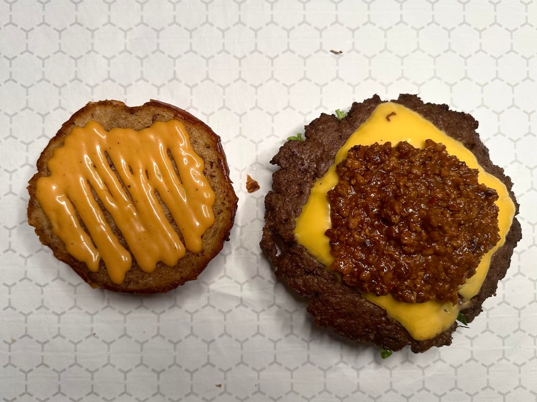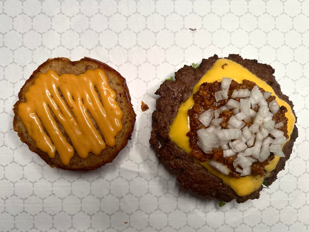 Burger night! This week’s special was a chili cheese smash burger with diced onions, pickles, and my sweet and zesty sauce on a buttered and griddled homemade bun. Mine was a rye bun, and my wife’s was sesame seed bun. The chili was not your standard flavor profile. It was made with ground pork and seasoned with sweet chili sauce, Korean bbq sauce, and rice wine vinegar.