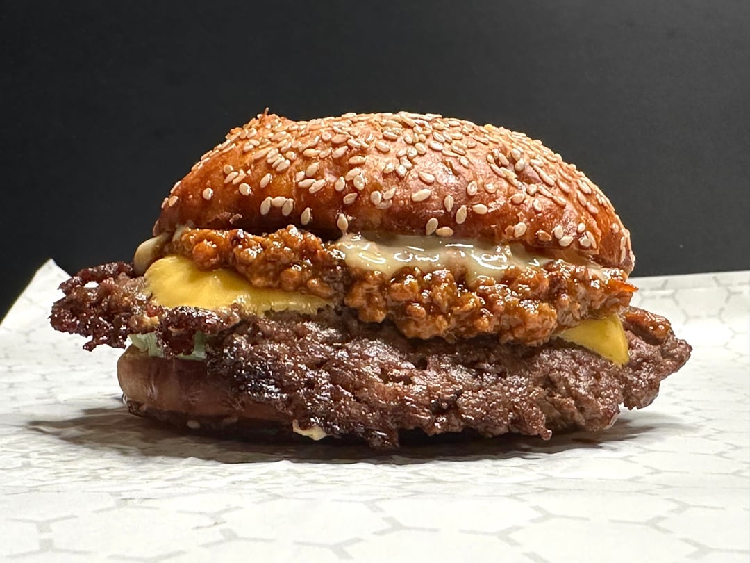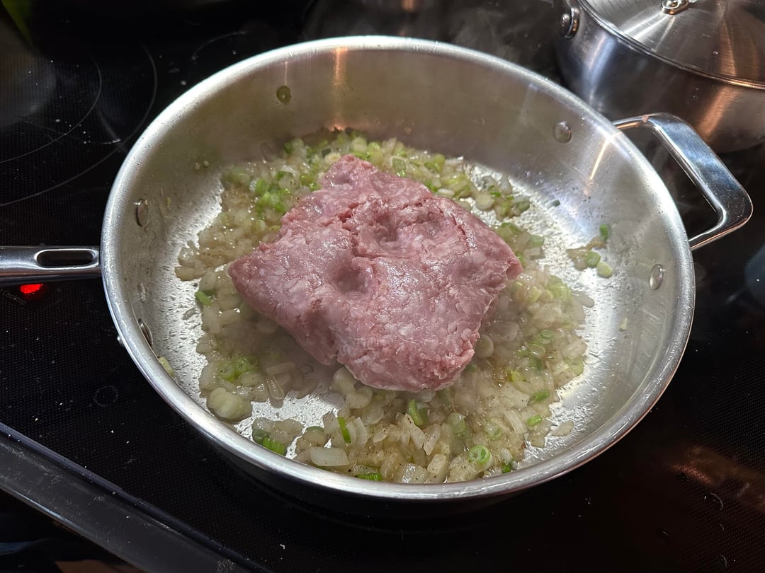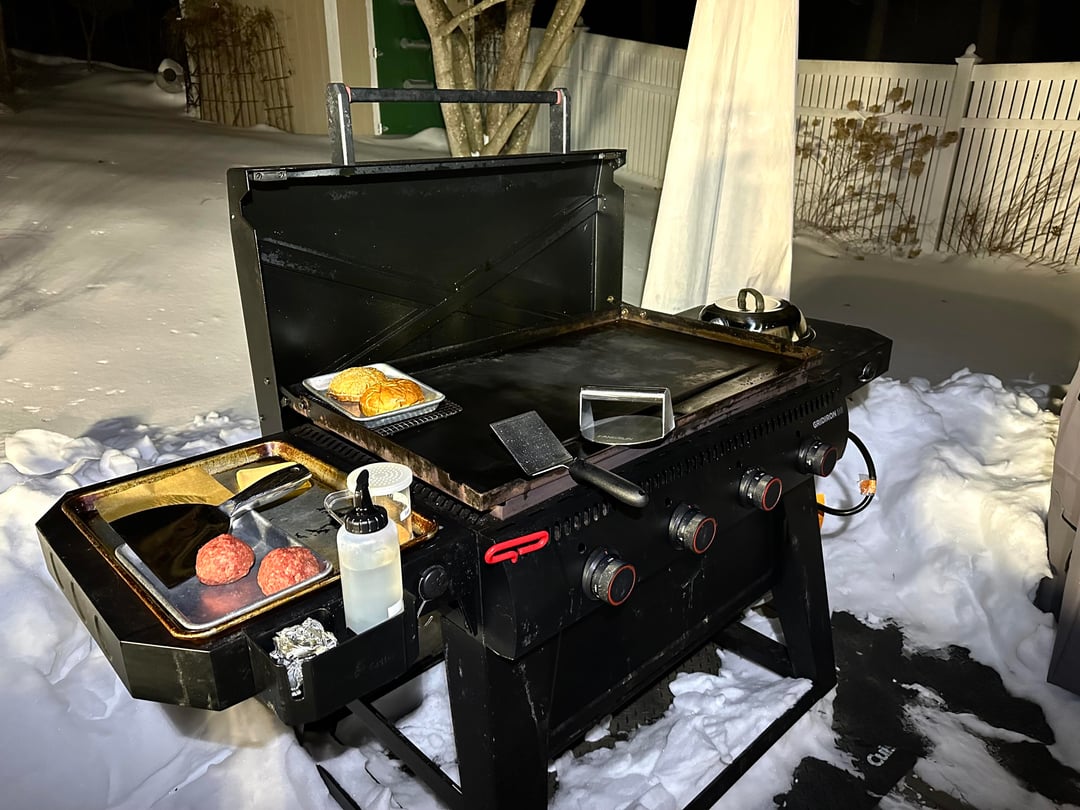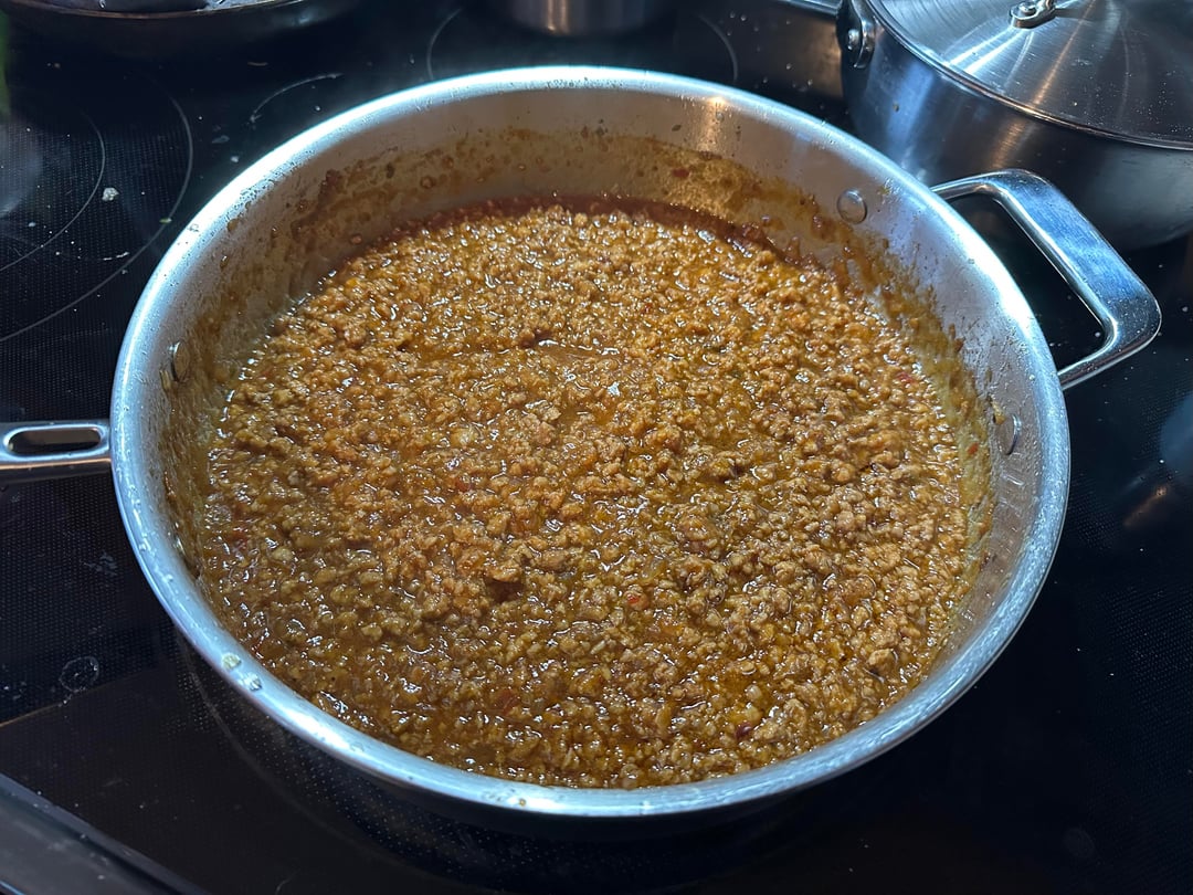 Burger night! This week’s special was a chili cheese smash burger with diced onions, pickles, and my sweet and zesty sauce on a buttered and griddled homemade bun. Mine was a rye bun, and my wife’s was sesame seed bun. The chili was not your standard flavor profile. It was made with ground pork and seasoned with sweet chili sauce, Korean bbq sauce, and rice wine vinegar.