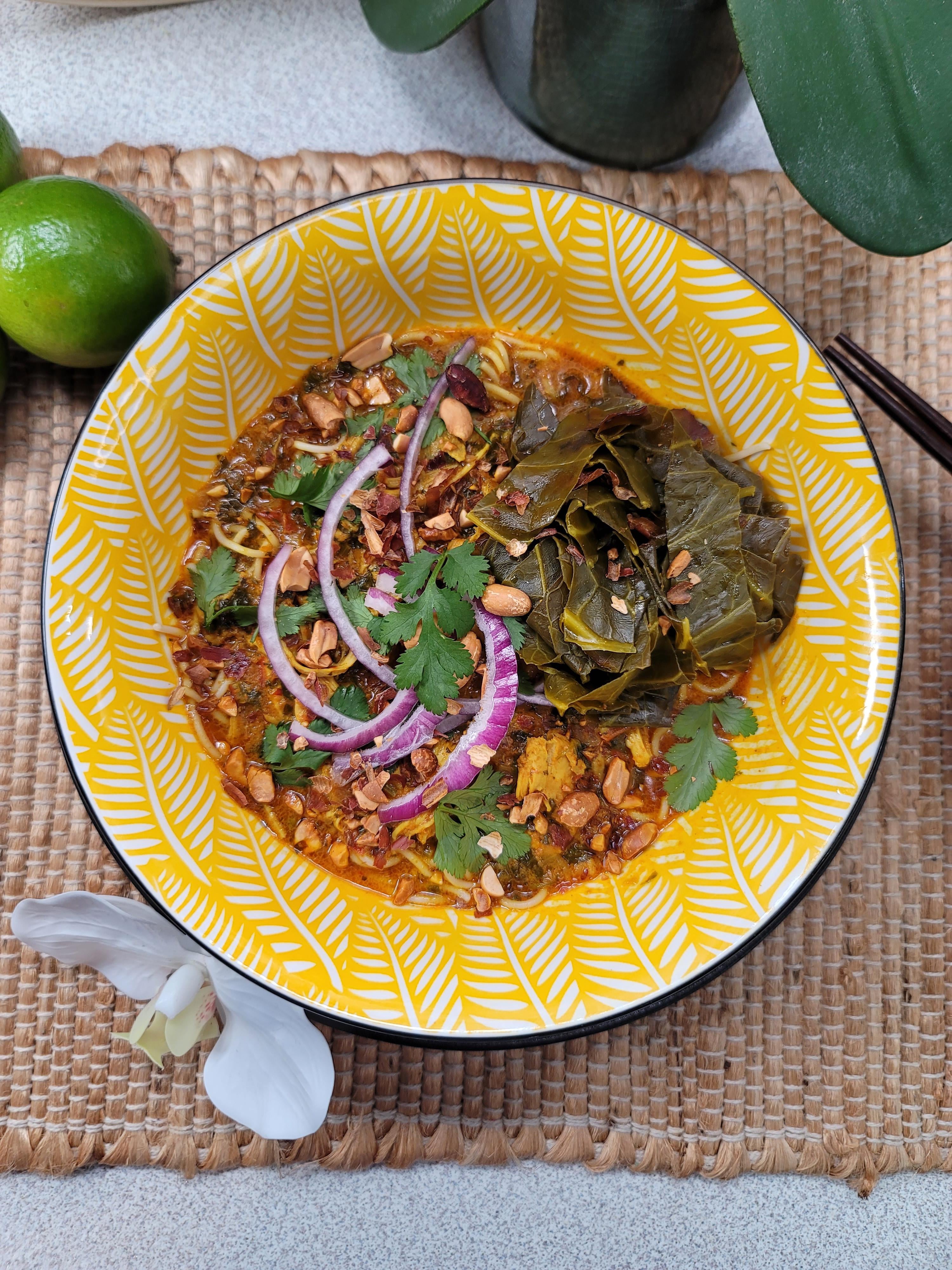 [Homemade]Khao Soi!!! Thai Coconut Curry Noodle Soup w/ Pickled Greens, Red Onion, Cilantro, and Roasted Peanuts. by Inner-Sir-1214 Food Porn