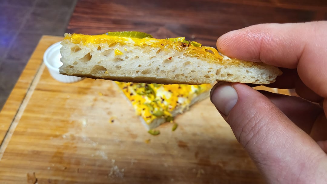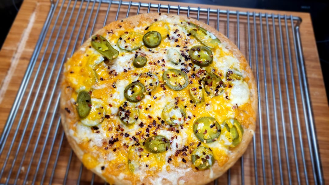 First attempts at homemade pizza. Pan style, 24hr cold ferment on the dough. Came out pretty good for first attempt. Would like to get a little more air in the dough and a little more crisp on the crust. One pepperoni, one Buffalo chicken, one jalapeno cheesy bread.