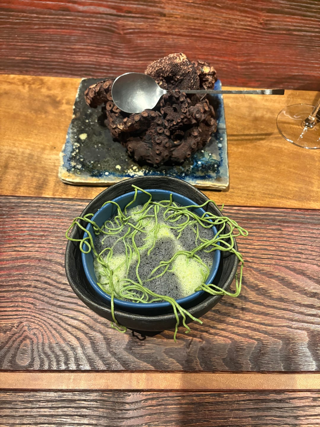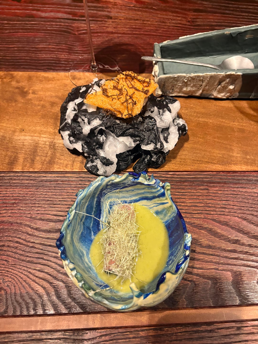 That said, I must be honest. I struggled to fully connect with the flavors and presentations of the dishes. This may stem from my limited understanding of Peruvian cuisine, but many flavors reminded me of Mexican food I have encountered before, relatively familiar and comfortable rather than surprising. While the textures were often complex, they rarely crossed the threshold into genuinely striking deliciousness. Similarly, although the chefs’ intention to express visual creativity was evident, I remain unconvinced that this creativity consistently enhanced the eating experience. For example, as seen in the photos, two dishes featured string-like components which, in my view, added little in terms of flavor or texture and instead made them more difficult to eat.