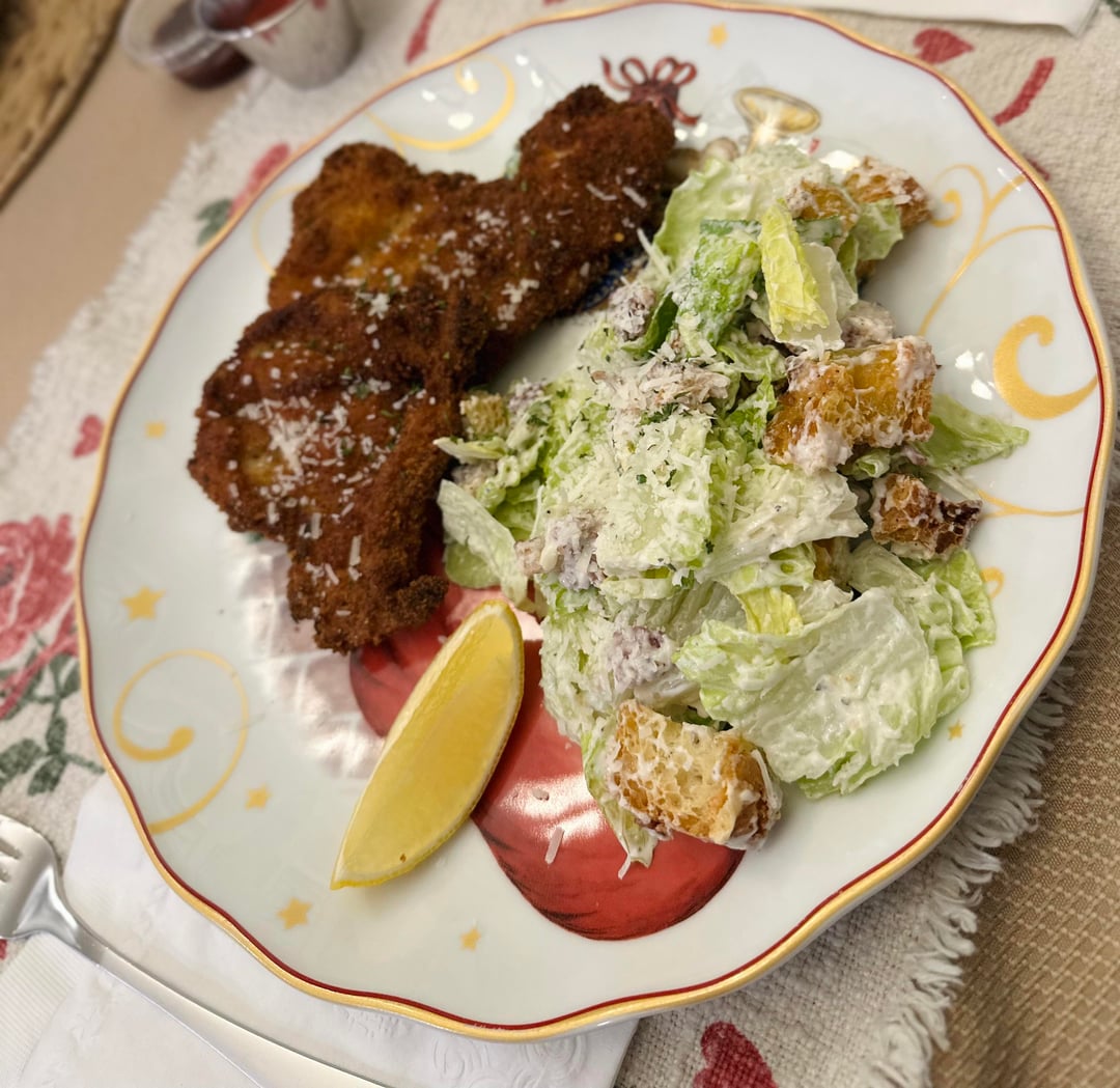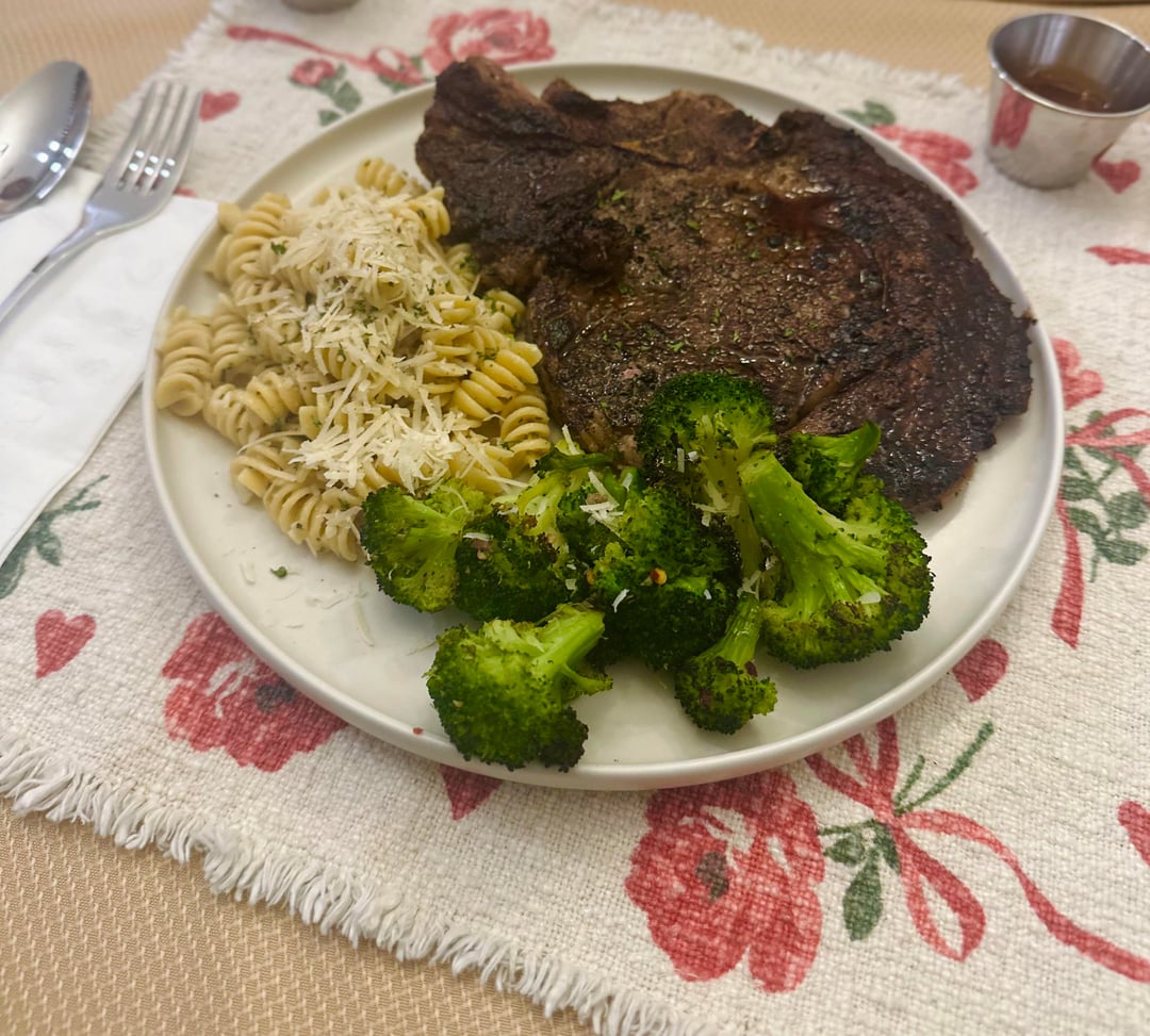 Roast Chicken Crown Stuffed with Garlic Rosemary Butter, Goose Fat Welsh Potatoes, Green Beans, Peas and Brocolli. Stuffing Parcel and White Wine Gravy.