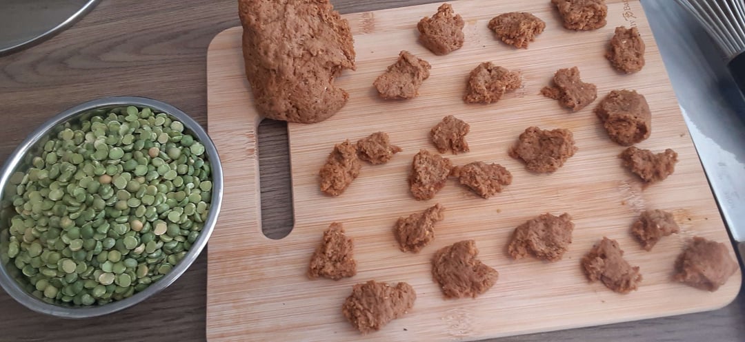 My personal spin on matar dal with seitan added.