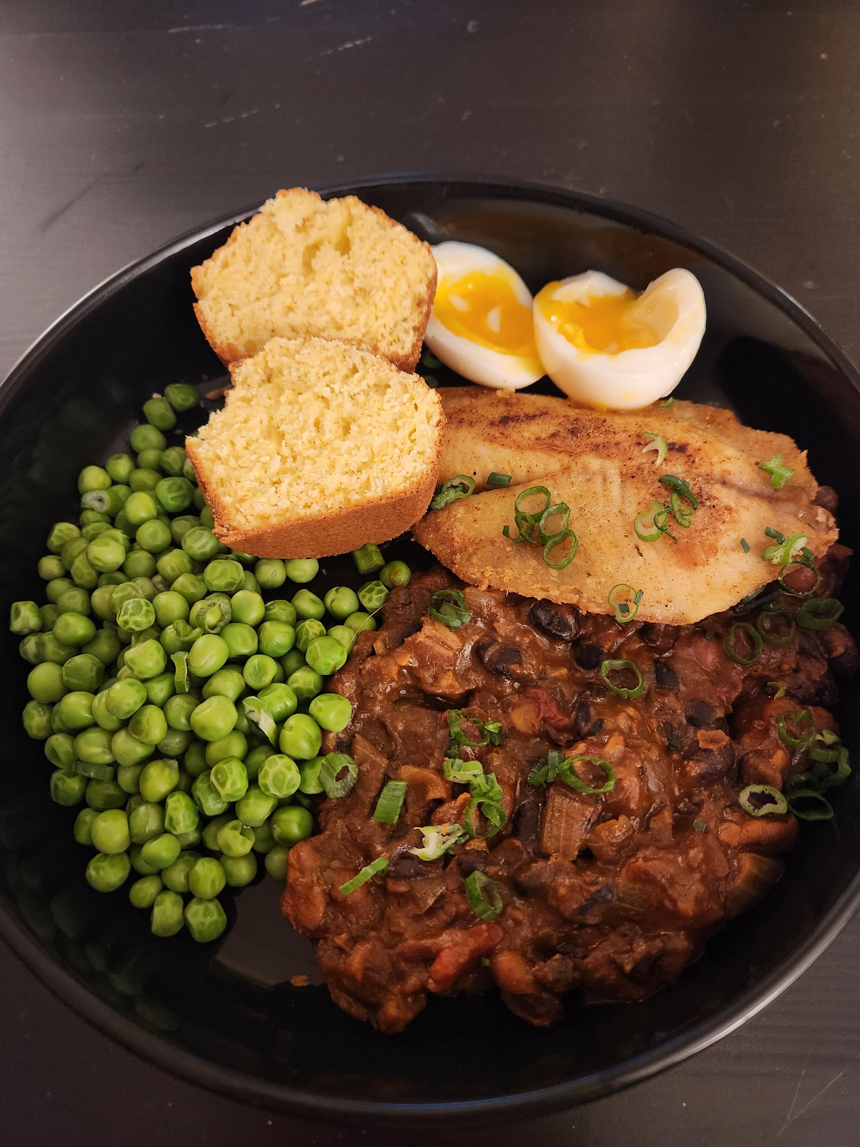 Tilapia, Kenyan-inspired beans, peas, cornbread, egg by ColonelKasteen Dinner Tonight Tonight's Dinner