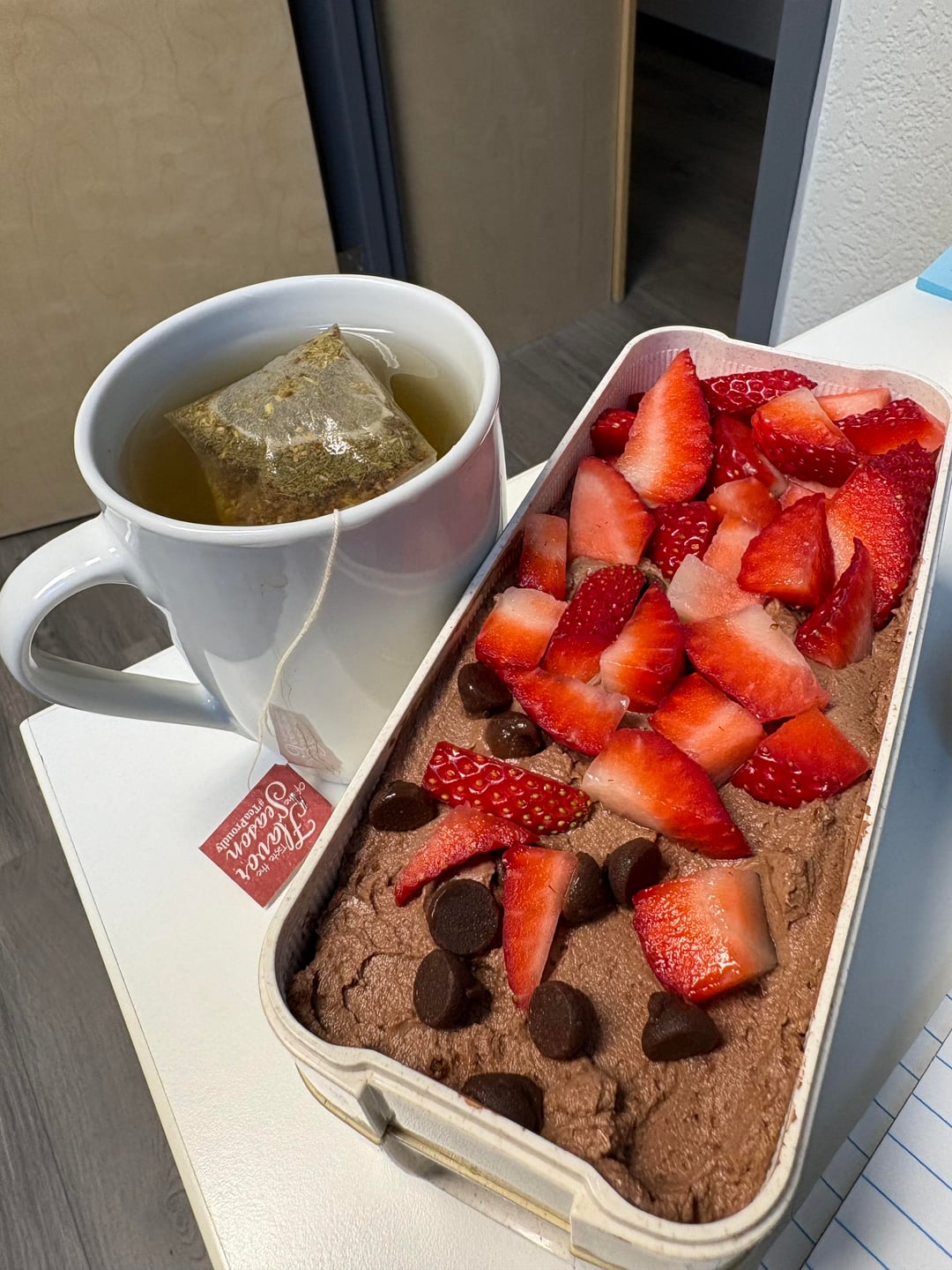 2nd Breakfast: Greek yogurt W/ 0sugar pudding mix & coco powder + strawberries & Lilys chocolate chips