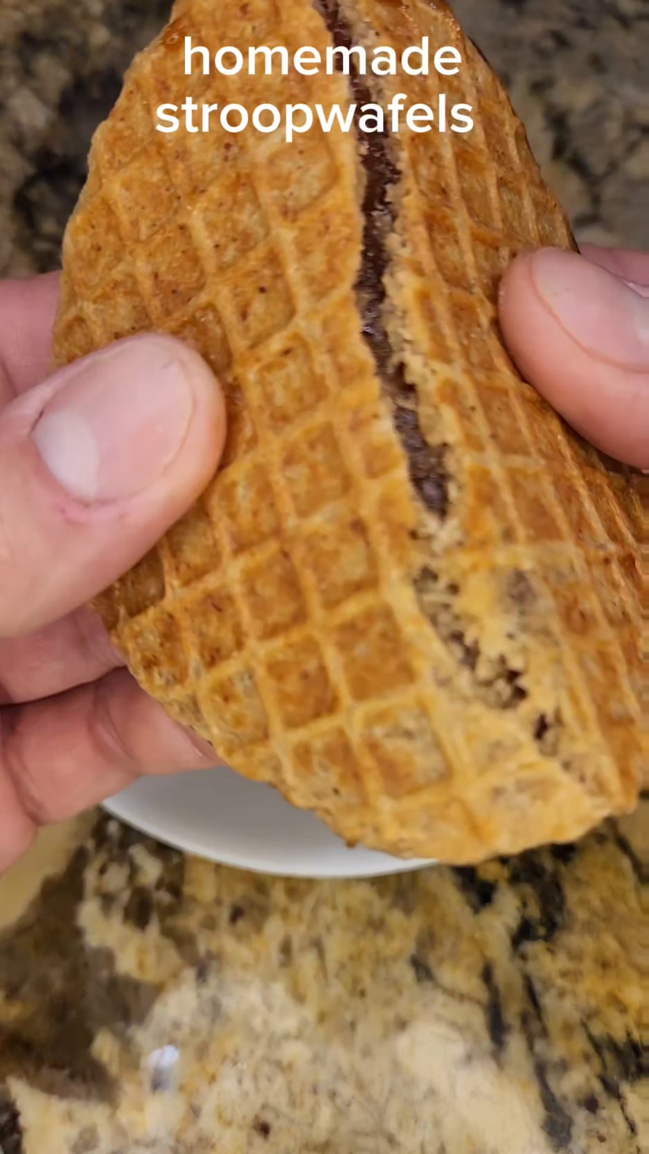 LetsCookie on February 3, 2026 1:34 pm Waffle Cone Maker Stroopwafel Cookies makes about 6 pieces Dough: 1 cup all-purpose flour 3TB brown sugar Pinch salt 1/2 tsp instant yeast 1/2 tsp cinnamon 3TB melted butter 1 egg yolk 1/4 cup warm milk 1/2 tsp vanilla Filling: 1/2 cup brown sugar 4 TB butter 2 TB corn syrup or honey (important for chew) 1/2 tsp cinnamon Pinch salt 1 tsp vanilla Dough Method: 1. Mix dry: flour, sugar, salt, yeast, cinnamon 2. Add wet: butter, egg, milk, vanilla. Mix into a soft, non-sticky dough. 3. Rest covered 30–45 minutes at room temp. It should puff slightly, not double. 4. Divide into golf ball-size portions. Roll smooth. 5. Heat waffle cone maker to medium high to high depending on your brand. I go full max. 6. Lightly grease. Place one dough ball in center. Close and cook 90-120 seconds until golden but flexible. 7. Immediately remove. While hot, use a thin knife to split horizontally like a cake layer. If it cools, it will tear. Work fast. Filling Method: 1. Simmer brown sugar, butter, honey, vanilla, cinnamon, salt for 2–3 minutes. Assemble: 1. Spread warm filling on bottom half. 2. Top with second waffle and press gently. 3. Let set 10 minutes. They should stay chewy, bendable, and glossy inside.