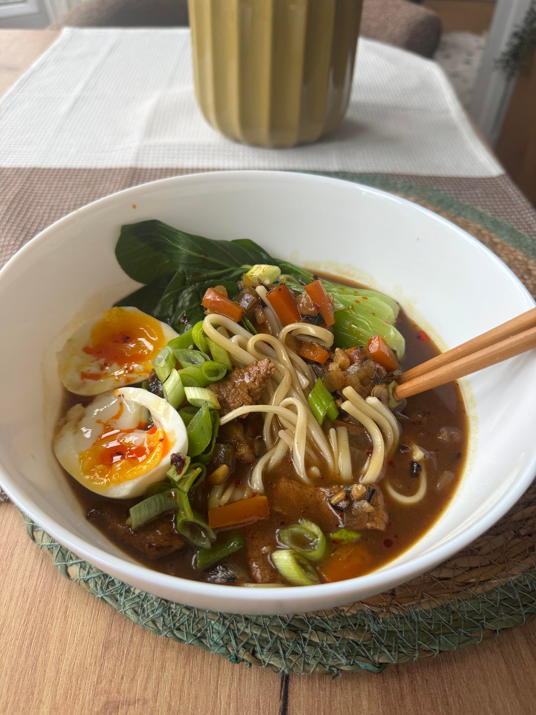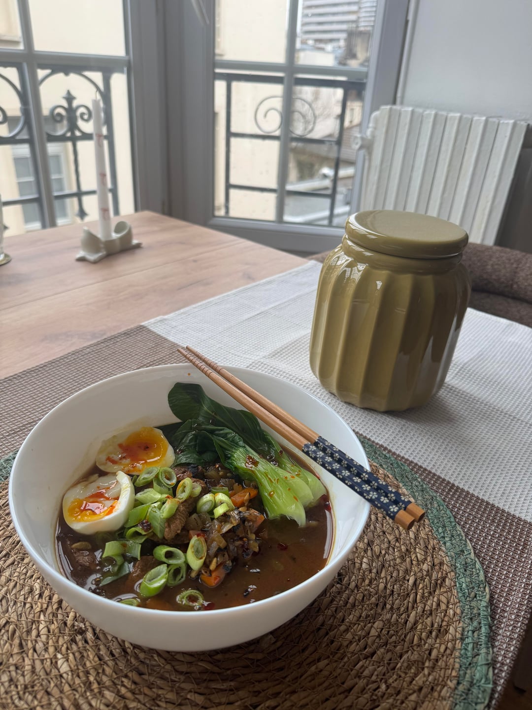 Had to try and make this soul warming recipe for this cold and rainy Parisian day. The curry cubes and noodles are storebought. Nonetheless, the flavor was magnificent.