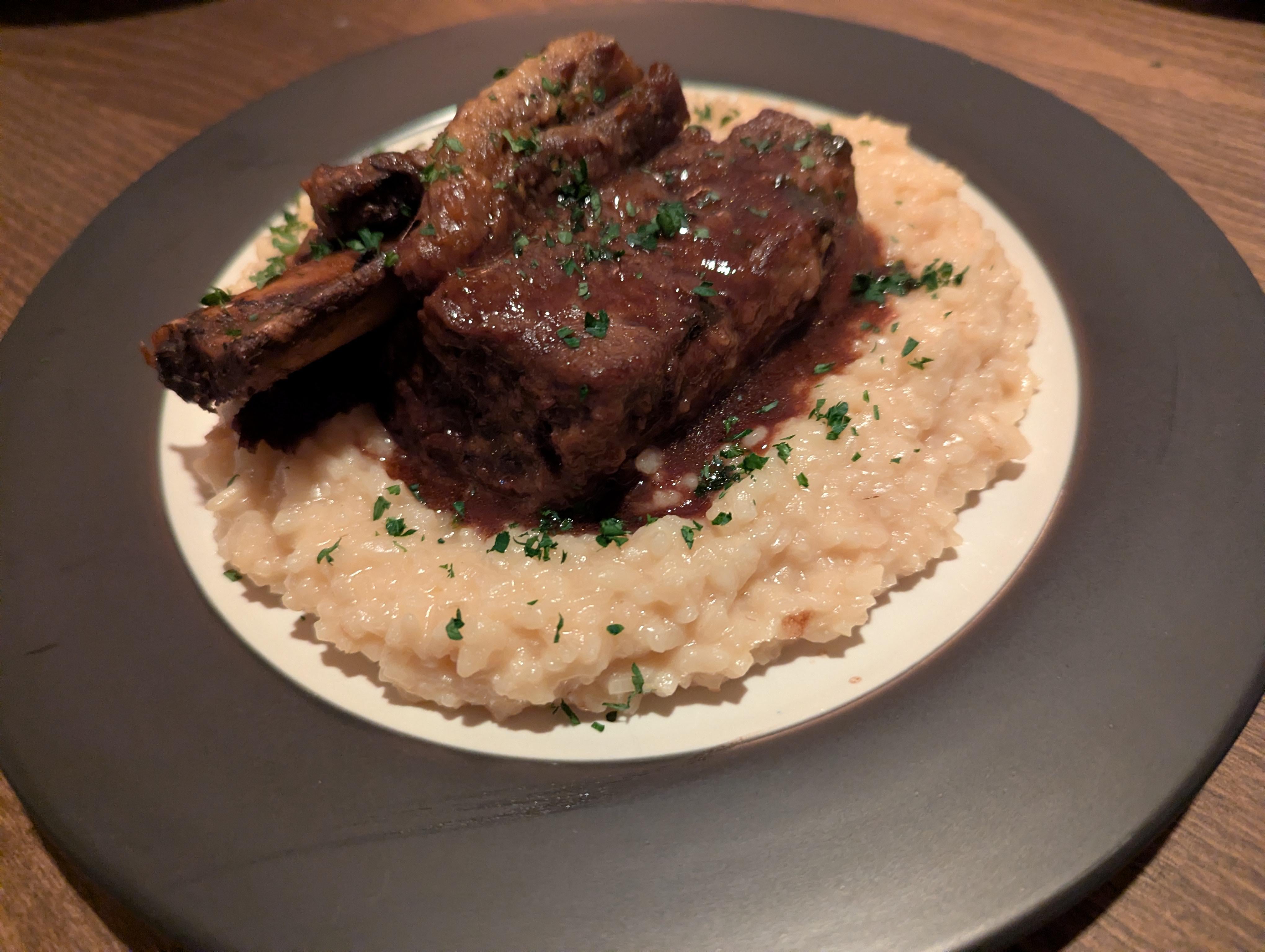 Beef short ribs where on sale and I have been craving some so I figured why not. First attempt with a onion, carrot, and leaks beef stock braising base. Reduced a Cab with some Madeira I had collecting dust, and a splash of Sherry vinegar by over half. Four hours at 285F in a Dutch. Sauce was super rich and a bit sweet so a little went a long way.