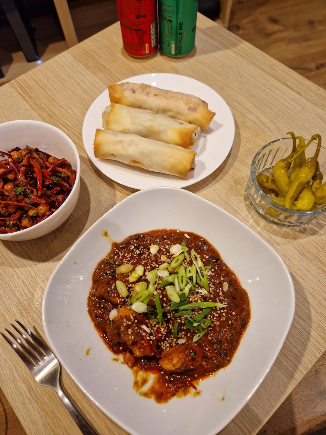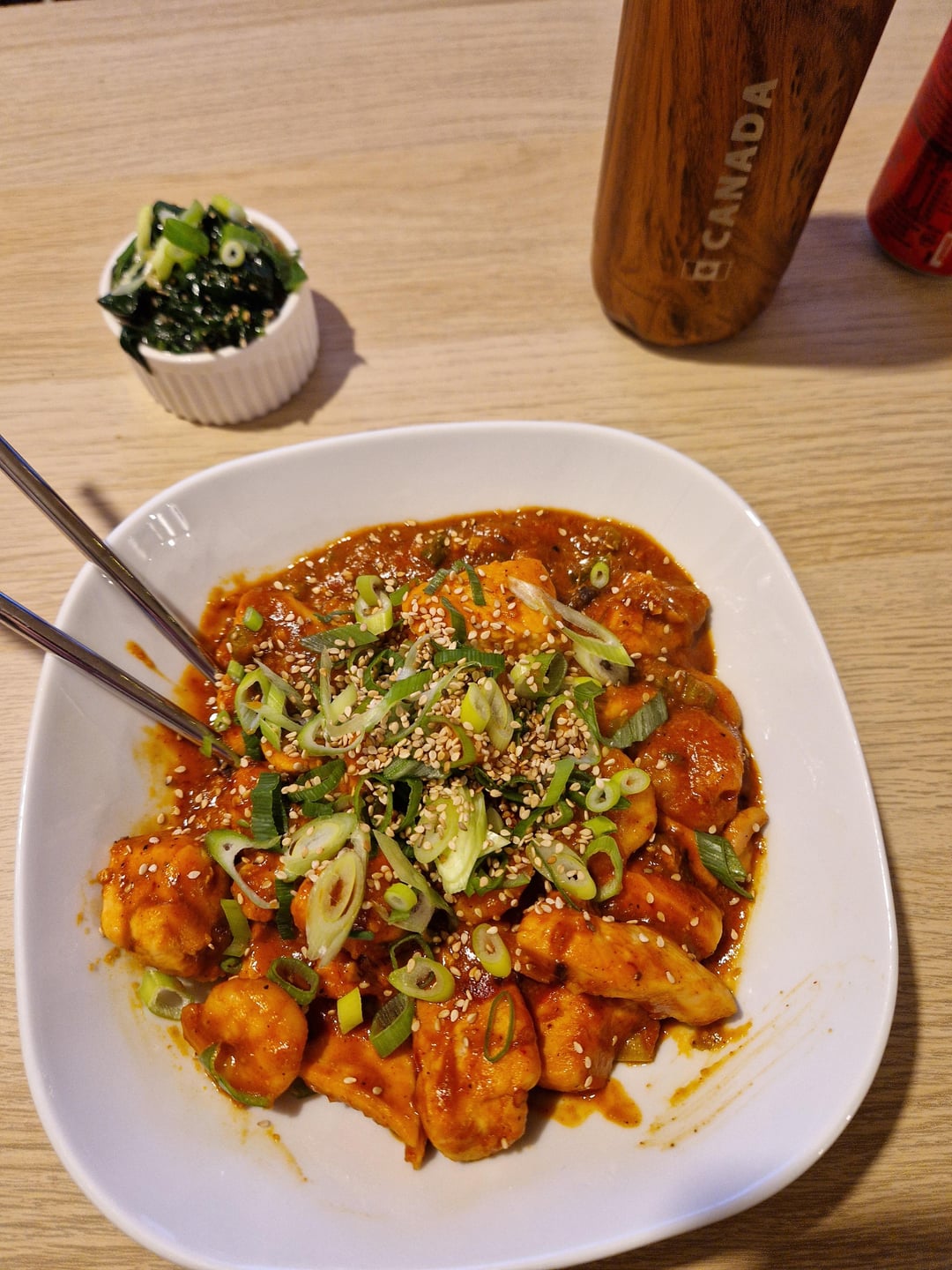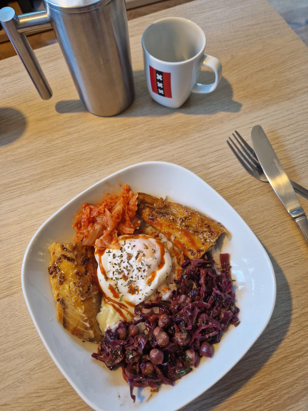 9. Leftovers rice bowl with smoked mackeral, kimchi and cabbage slaw