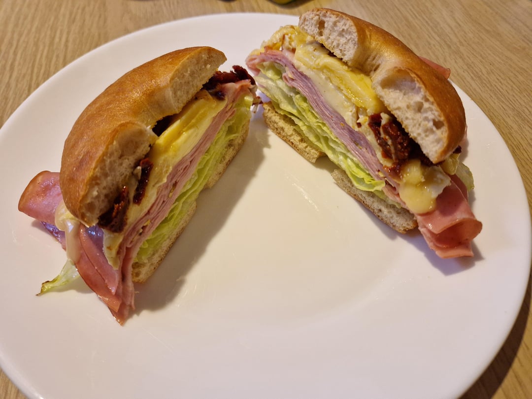 7. Bagel with mortadella, brie, cheddar and sundried tomatoes