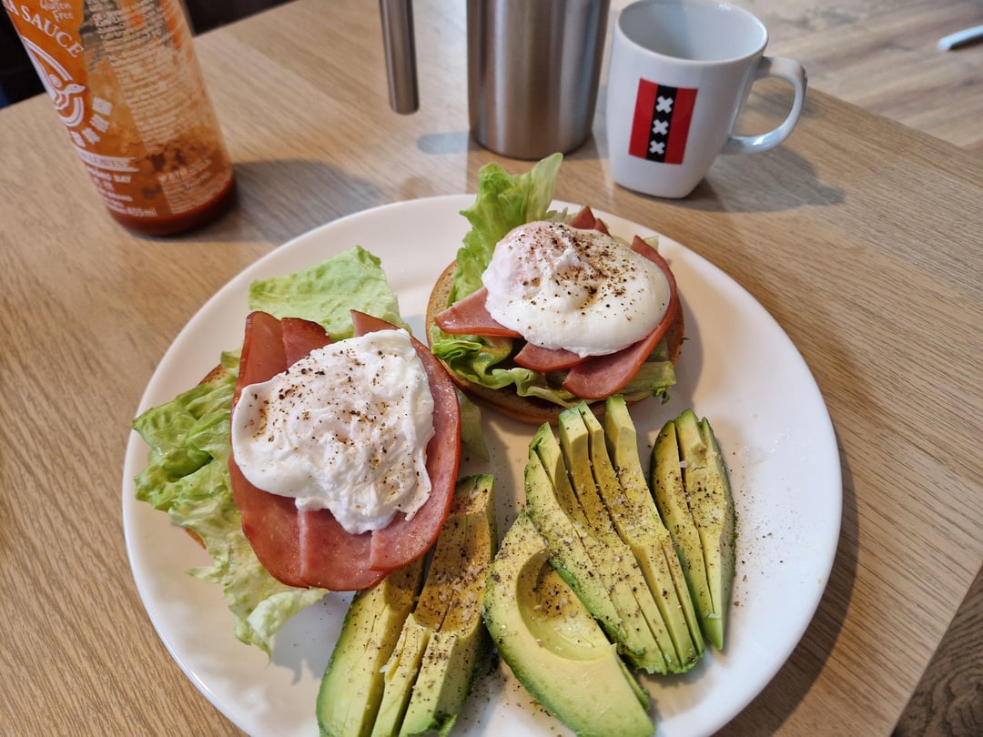 4. Scrambies with nduja and chorizo + chickpea and cabbage slaw