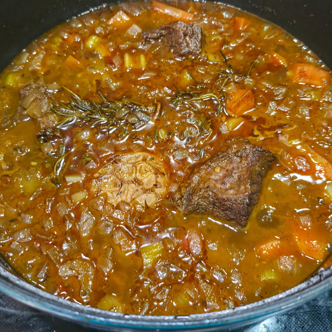 – Add short ribs back to pot and pour in the 4 cups of beef broth.