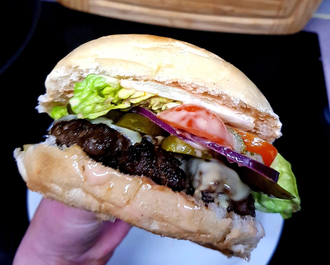 Quick Classic Beef Burger with All The Stuff. Coleslaw and Spicy Mac and Cheese. Tasty Food, Terrible Photo. by pink_flamingo2003 Dinner Tonight Tonight's Dinner