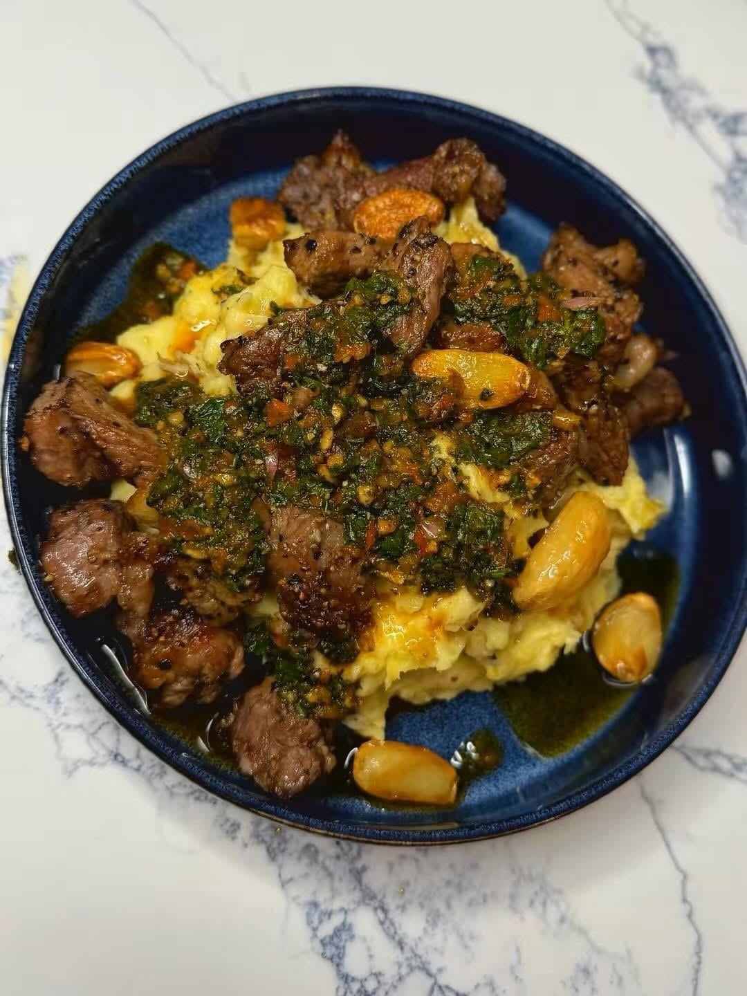 Chimichurri Steak Bites W/ Roasted Garlic Mashed 🧄 by milkandhoneyyyyyyyyy Dinner Tonight Tonight's Dinner